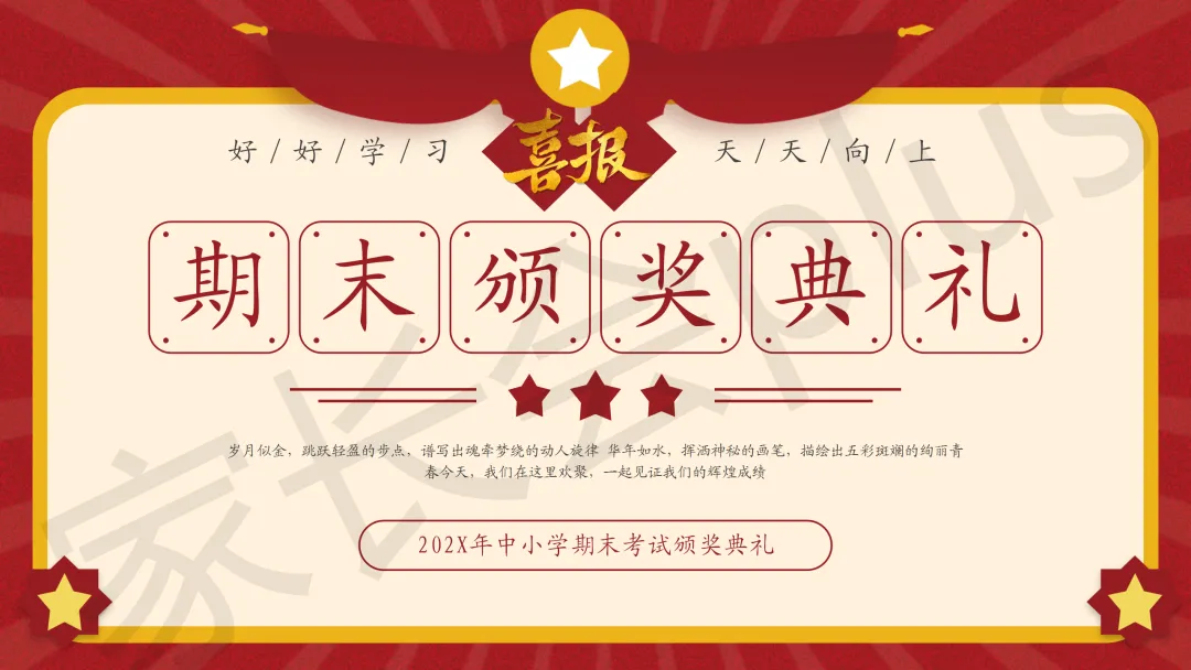 中小学春季期末考试颁奖典礼 PPT 课件模板 10 推荐(含假期安全提醒)。