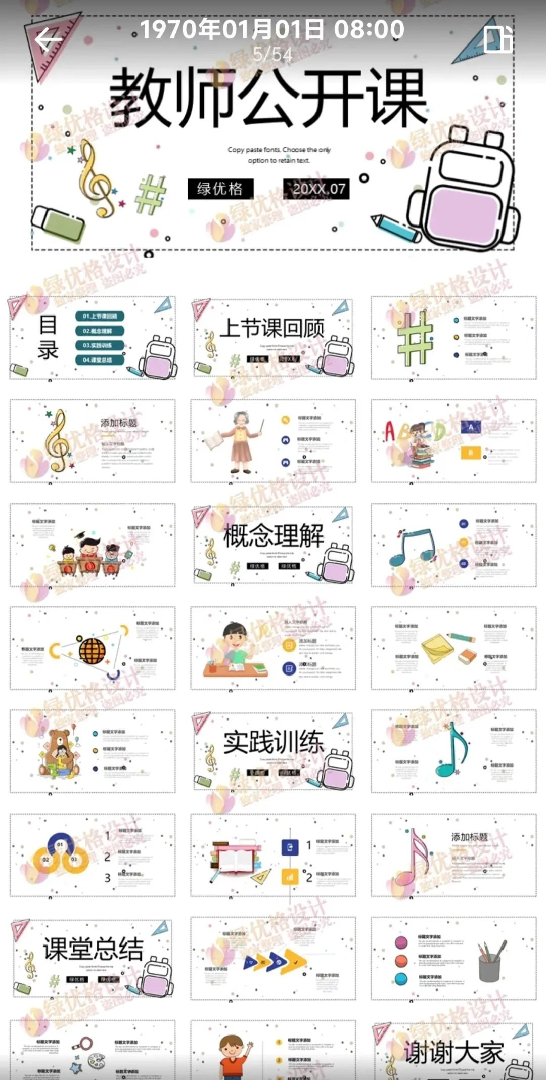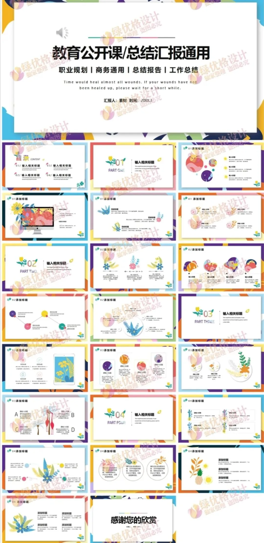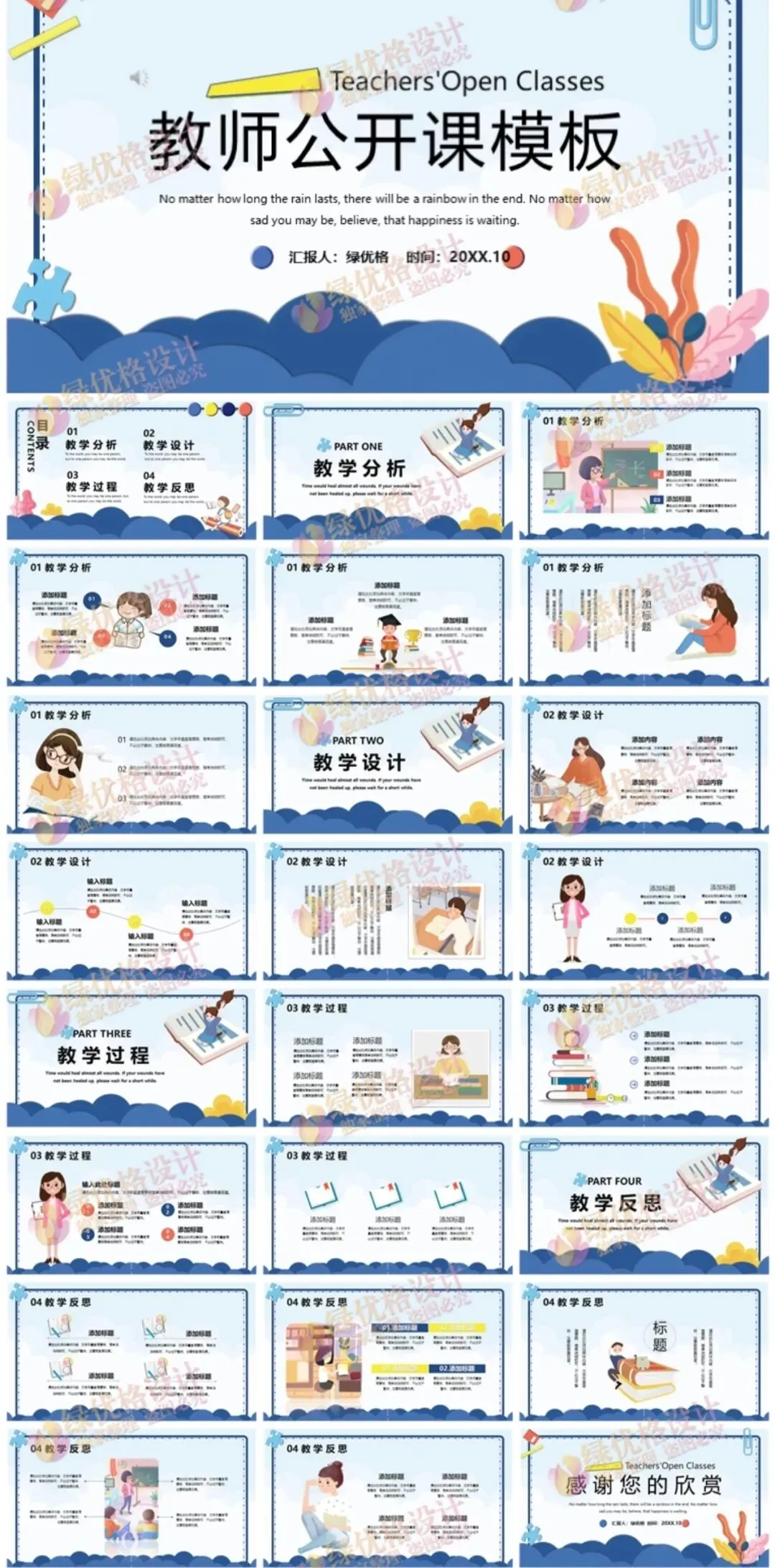 本文内容分享的是:公开课教育ppt模板小清新卡通动态 教师说课教学示范精品课件 73套ppt模板
