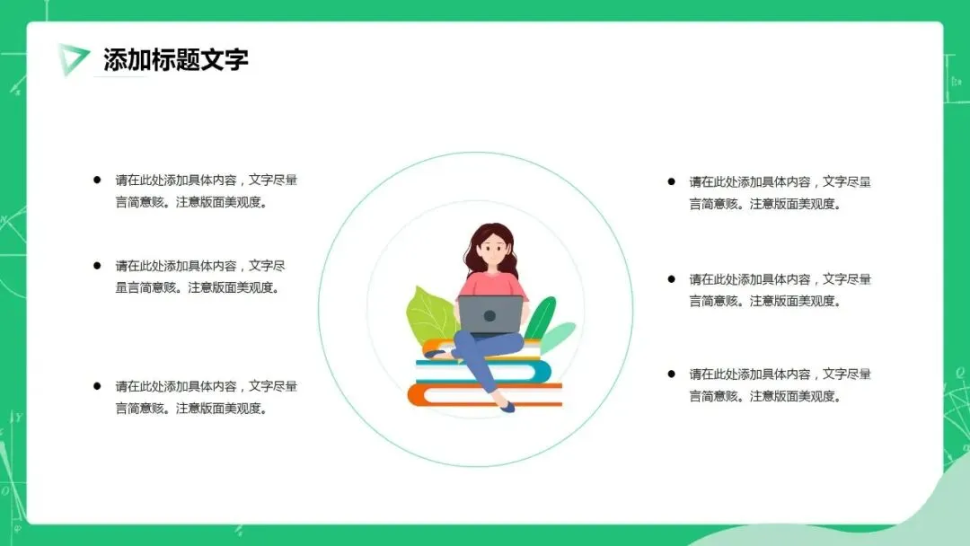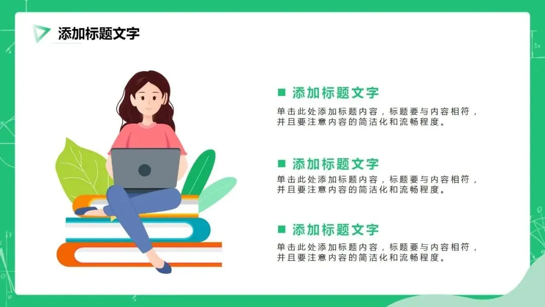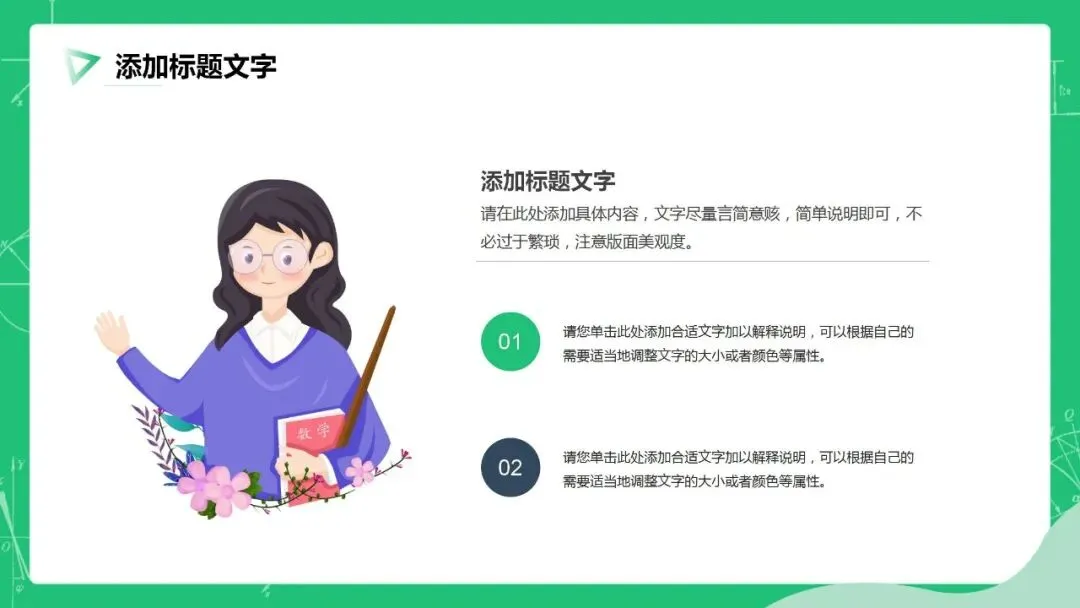这是一套绿色卡通女老师背景的教师公开课PPT模板,共24页;