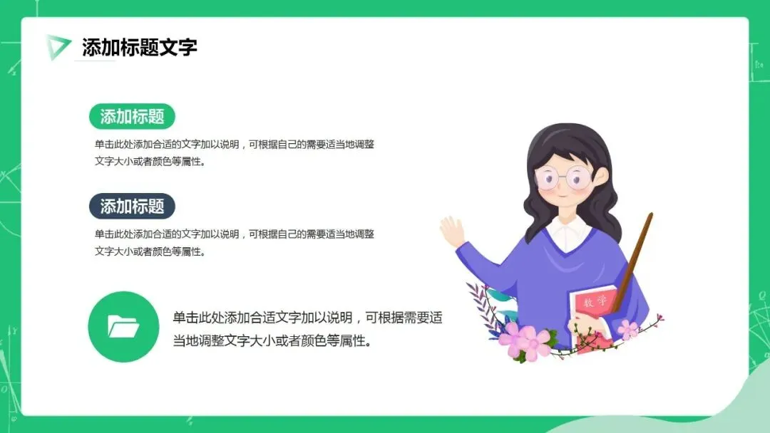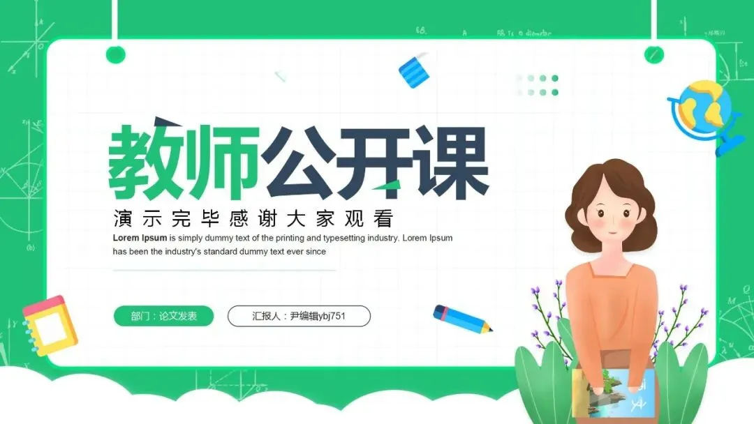 【绿色卡通女老师背景的教师公开课PPT模板】