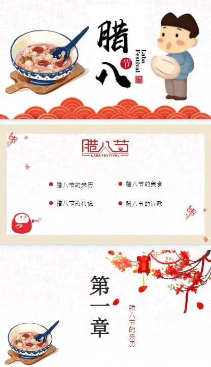 岁暮冬深,腊八将至,一碗暖粥熬煮岁月温情,一席传统承载千年文脉。腊八节作为春节序曲,藏着国人对团圆的期盼、对来年的祈愿,熬粥、祈福、扫尘的习俗,皆是刻在民俗里的温暖记忆。本次 PPT 模板以腊八为核,融传统纹样、暖冬色调与节日元素于一体,适配节日讲解、民俗科普、校园活动、企业暖场等多种场景,让你一键解锁腊八主题表达,把冬日美好与传统韵味娓娓道来。