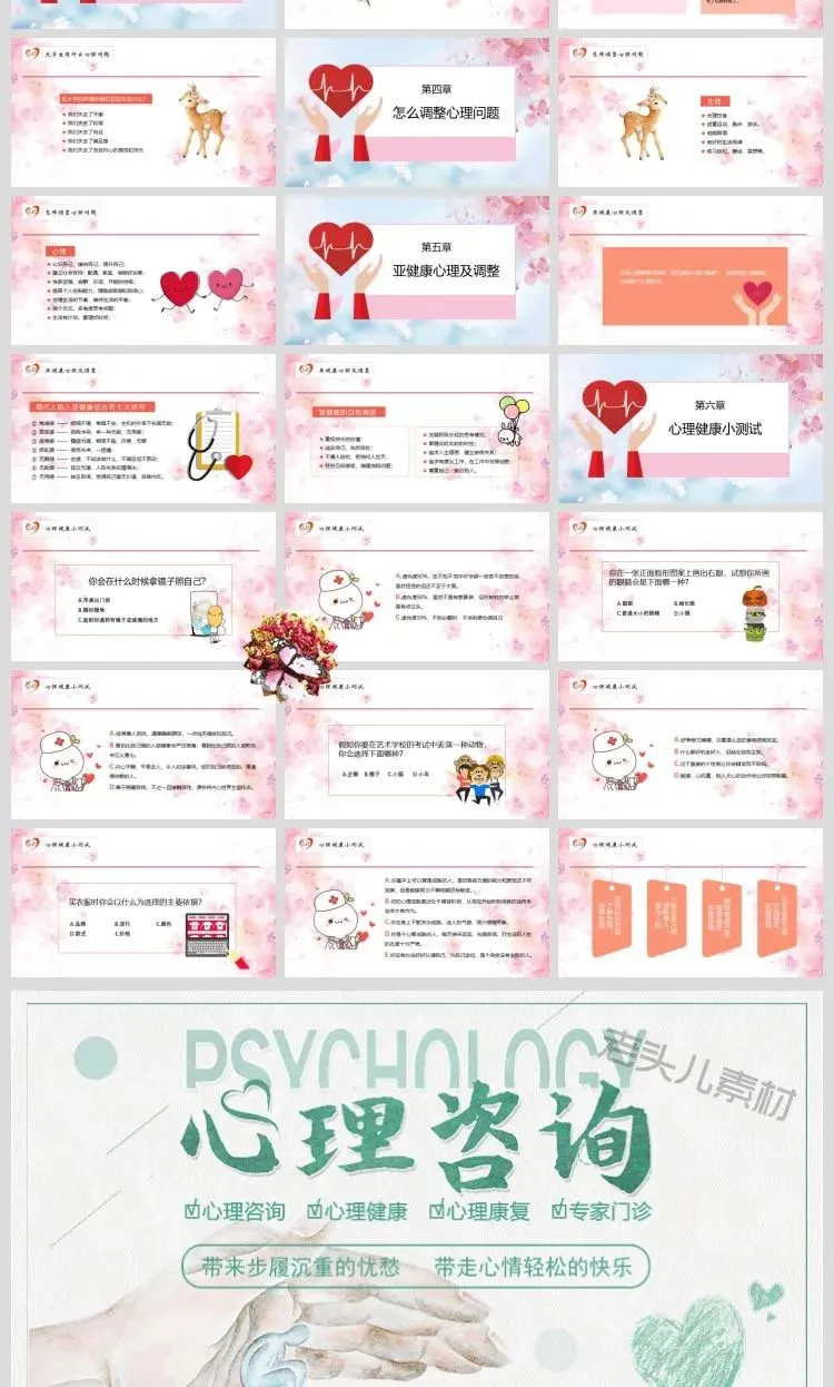 应广大老师的要求,今天为大家精心整理推出:儿童心理健康PPT模板大学生自闭抑郁症情绪减压课件集,适合中小学各阶段教学!本次资源内容非常齐全,建议各位老师都领取哦~(文末附资源领取方式)