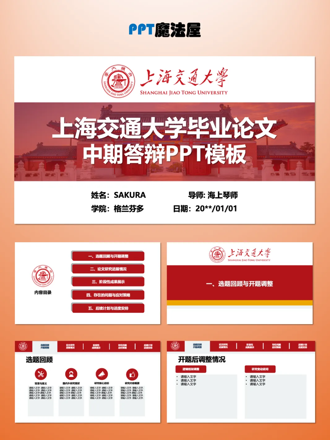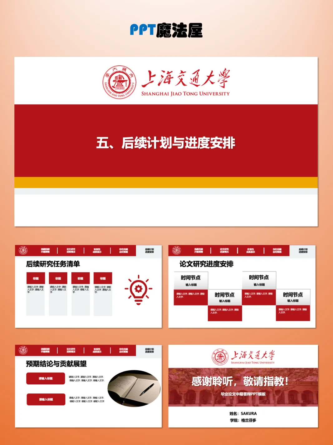 >上海交通大学毕业论文中期答辩PPT模板