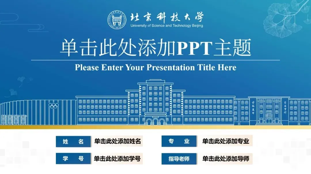 本PPT模板以蓝色系为主,搭配清新青色与纯净白色,巧妙嵌入银杏叶等元素,适用于论文汇报、学术会议展示等科研场景。