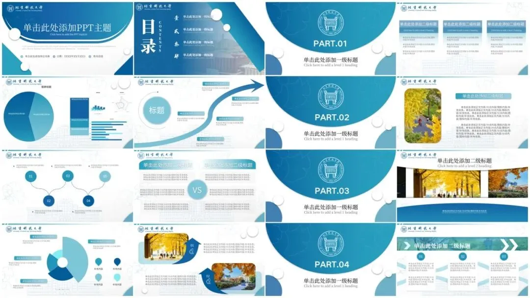 ③进入北京科技大学融合门户(i.ustb.edu.cn),点击资源-设计素材-PPT大赛获奖设计模板,即可获取精选作品模板。