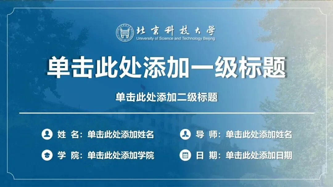 本PPT模板以“科技蓝”为主色调,结合若隐若现的校园符号,营造出冷静深远的视觉层次,适用于各类科研汇报场景。