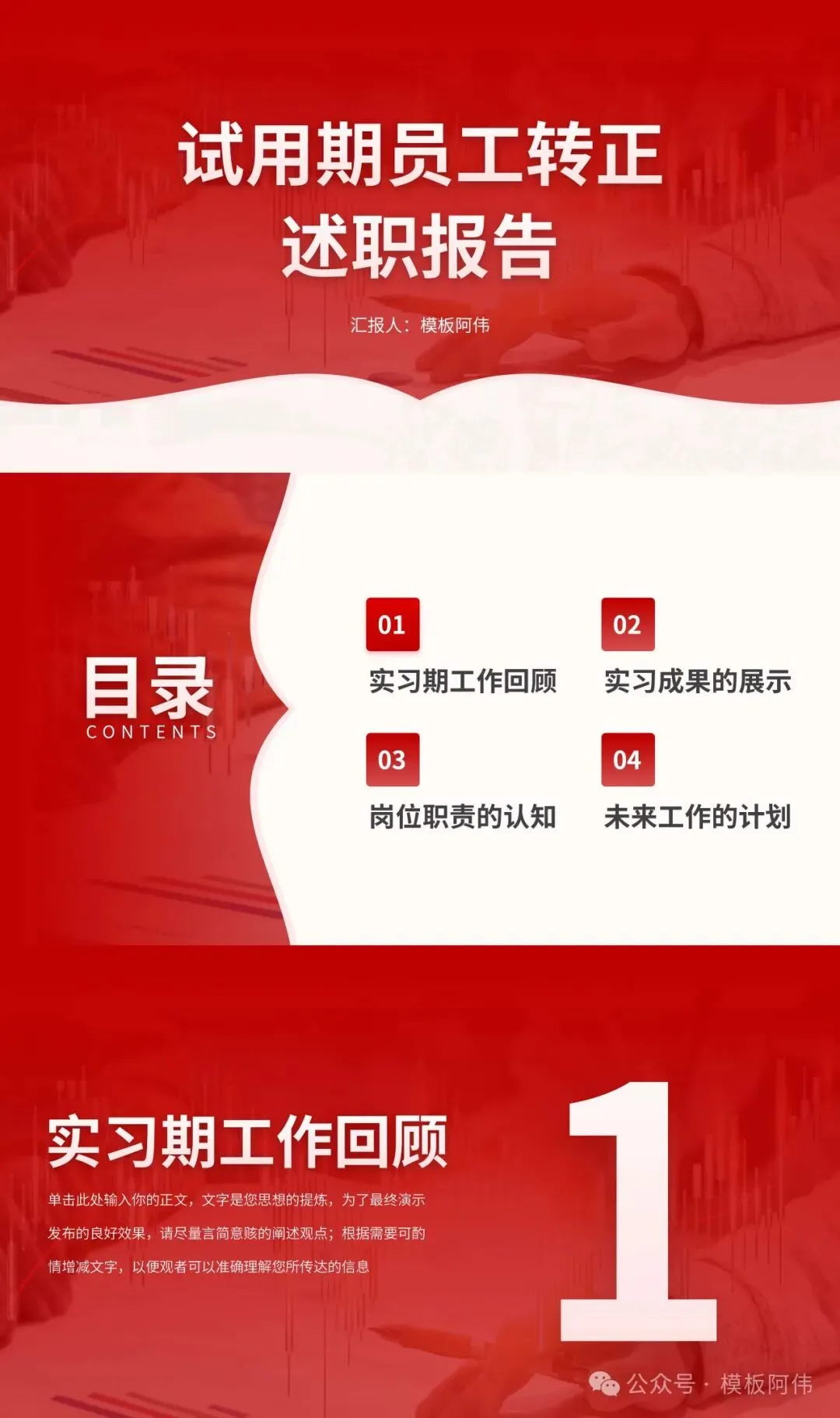 PPT模板框架完整,适用于试用期员工转正述职报告