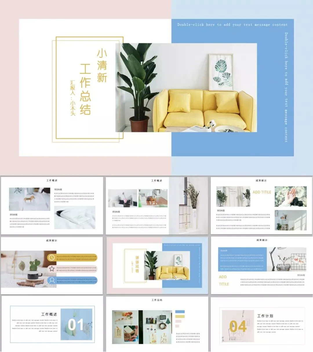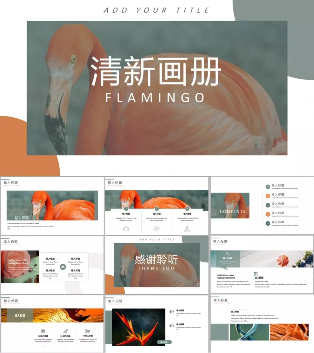 这些PPT模板整体的设计排版和配色都非常干净清新,在许多场合都可以采用,能极大地提高你的逼格。
