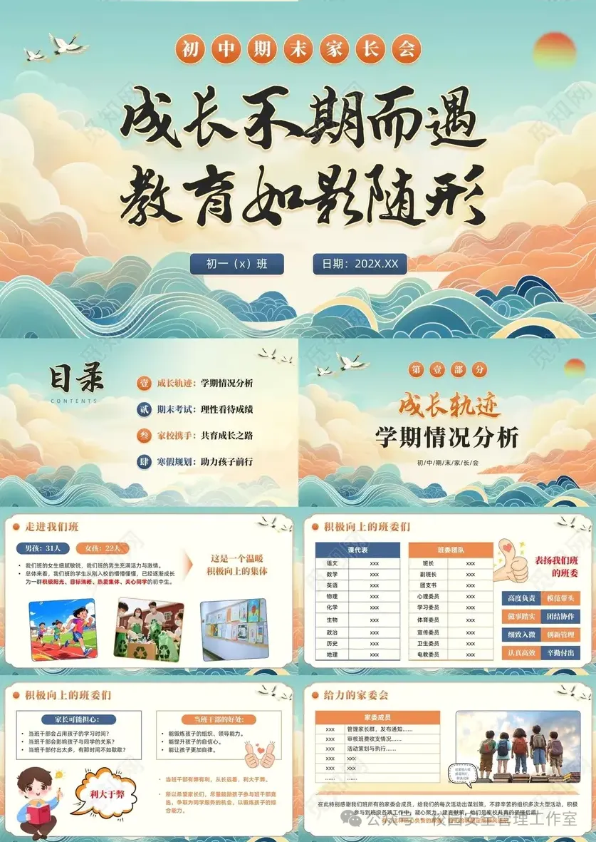 期末家长会是中小学教育中不可或缺的家校沟通桥梁,核心目的在于搭建教师与家长的高效对话平台,全面复盘本学期学生的成长轨迹、学业表现与行为习惯,同步学校教育进度与育人重点,凝聚家校共育合力,为学生后续发展精准赋能。