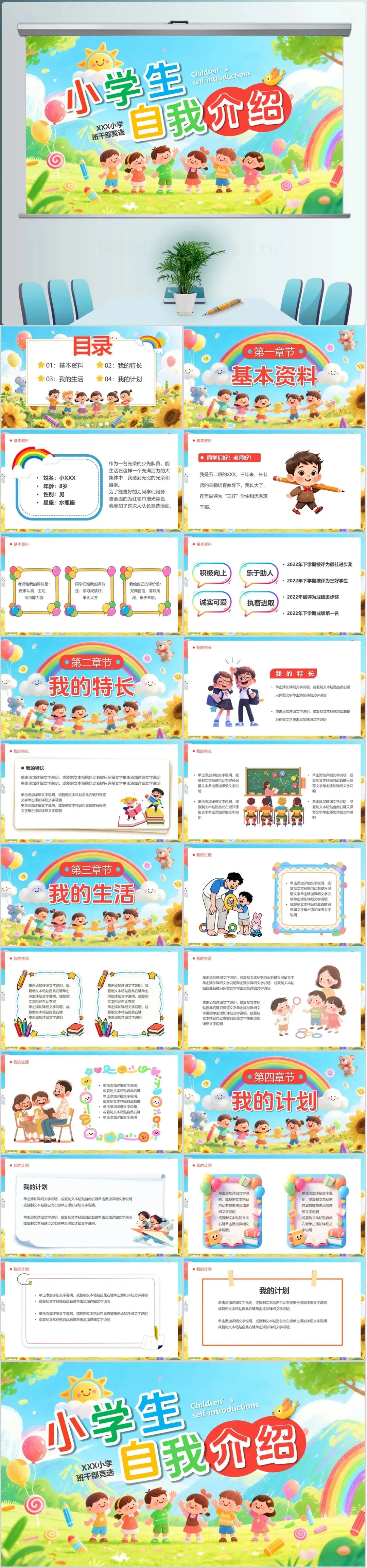 可爱卡通小学生自我介绍班干部竞选ppt模板