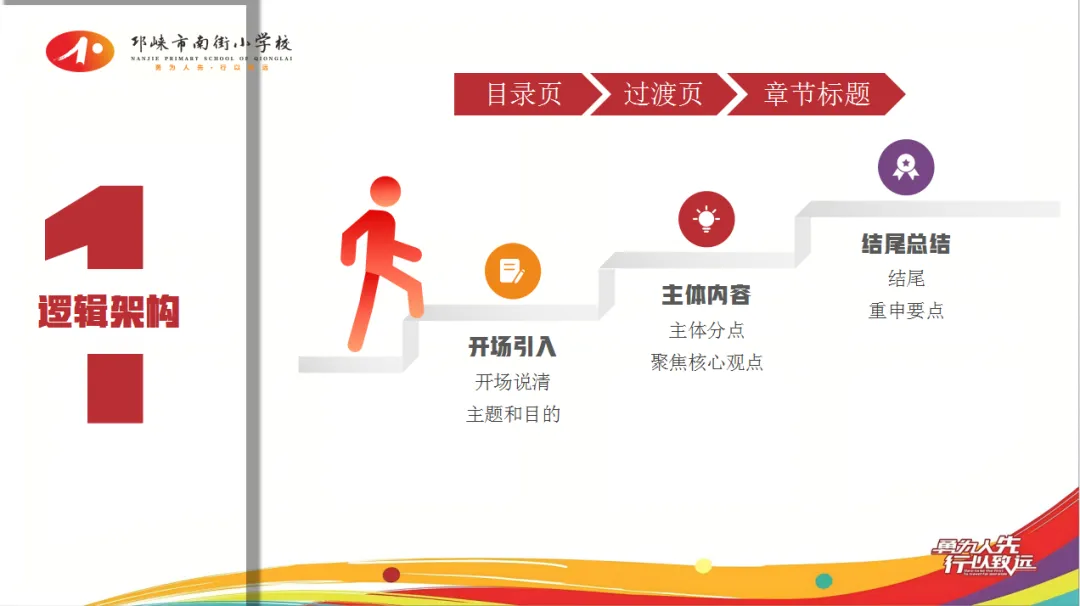 采用“开场引入—主体内容—结尾总结”三段式,10页以上建议增设目录页和过渡页,并标注章节标题,保持内容连贯性。