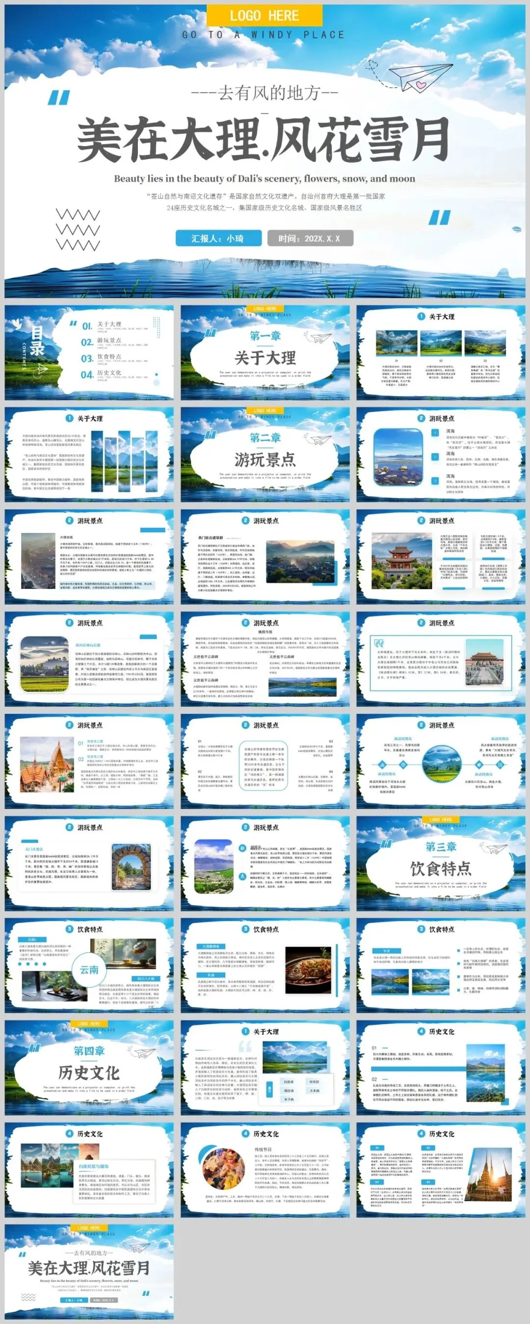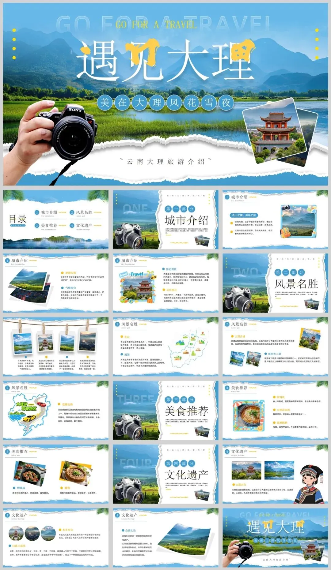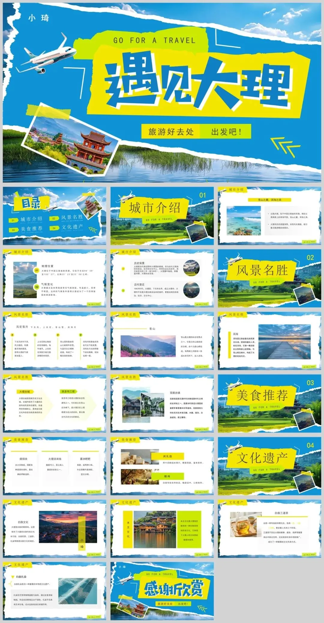 分享一期云南大理旅游介绍PPT模板,一共有8套!