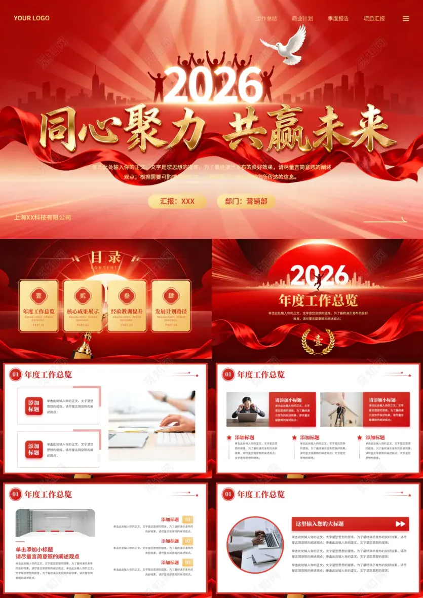 红色科技风年终盛典年会大会颁奖典礼ppt模板年会总结2026