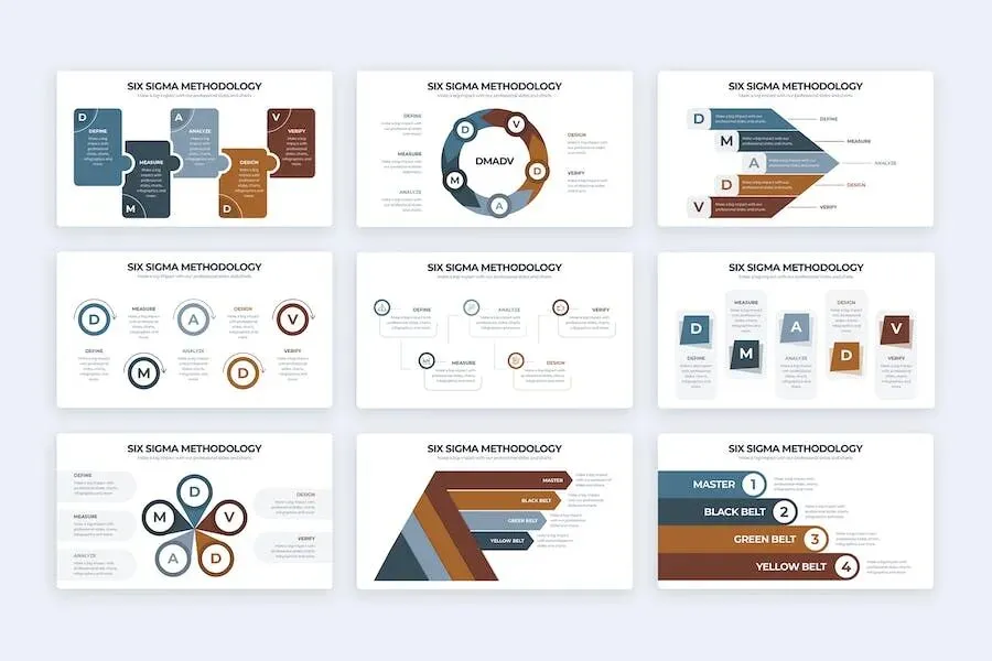 六西格玛质量管理方法论信息图形PPT模板,本套模板由顶尖PPT提供下载,模板支持PPTX等格式,适用于图形、管理、信息、方法论、质量、六西格玛等类型的需求。模板尺寸规格为1920×1080。效果预览图中的配图仅作示意,源文件不包含。下载即可获可编辑的源文件,轻松定制,满足您的多样化需求。