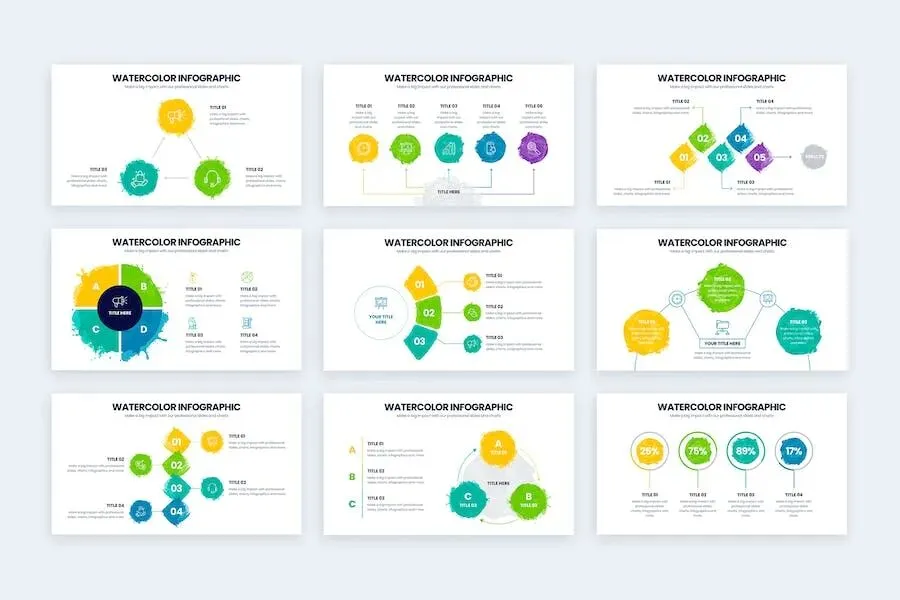 美学水彩艺术风格信息图形展示PPT模板,本套模板由顶尖PPT提供下载,模板支持PPTX等格式,适用于图形、水彩、艺术风格、美学、信息等类型的需求。模板尺寸规格为1920×1080。效果预览图中的配图仅作示意,源文件不包含。下载即可获可编辑的源文件,轻松定制,满足您的多样化需求。