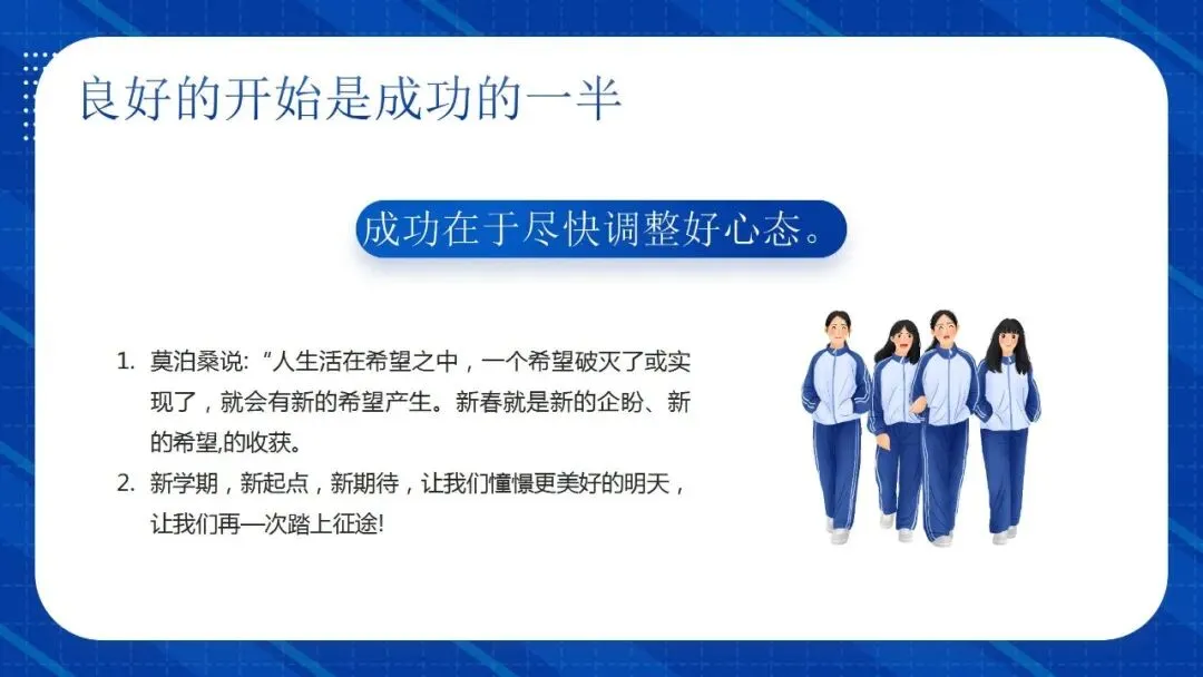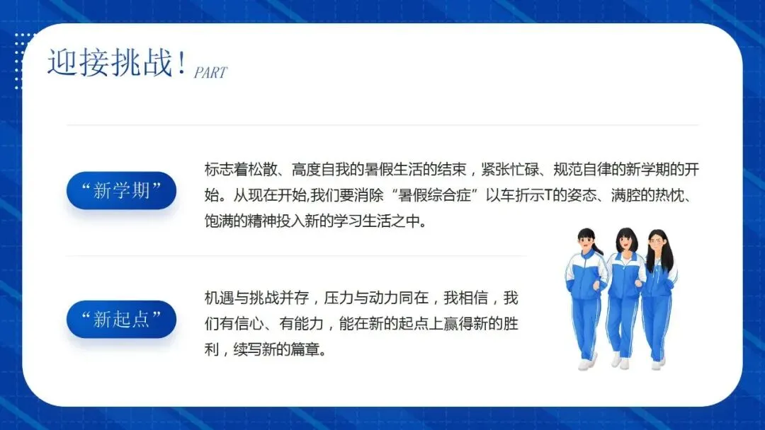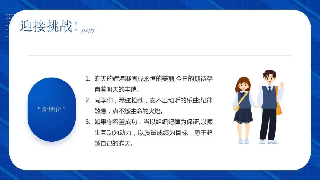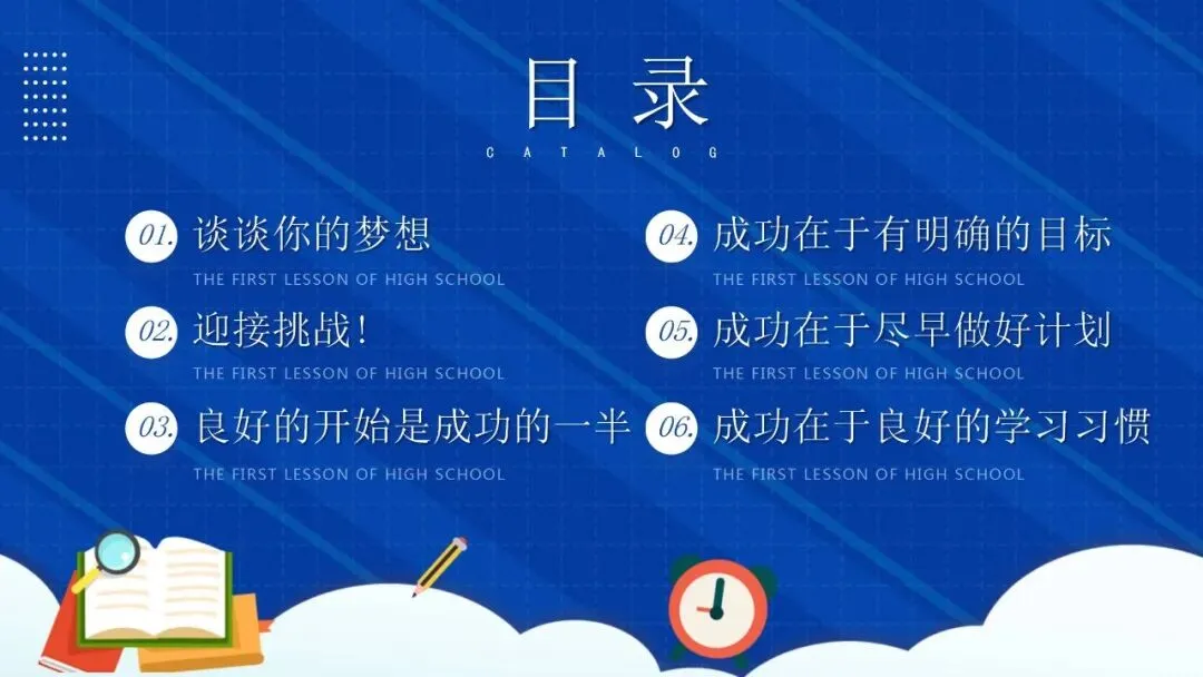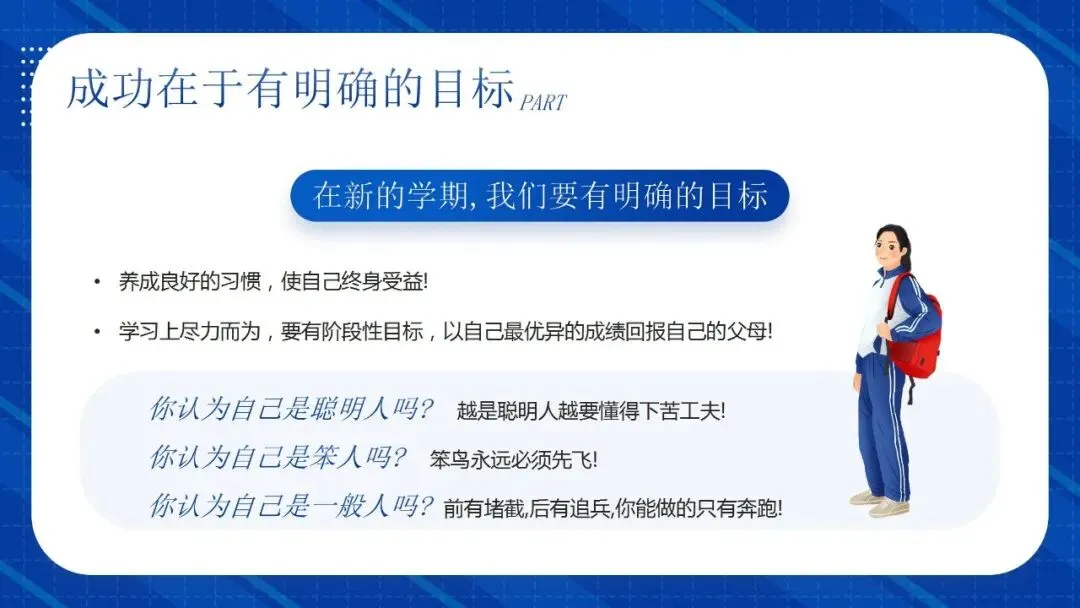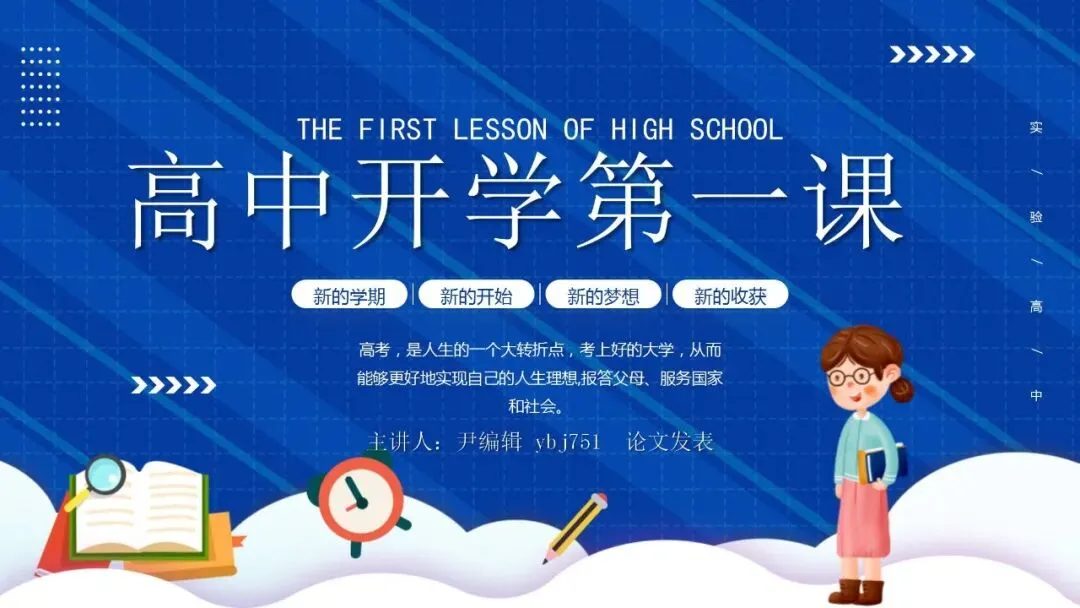 【蓝色卡通风格的高中开学第一课主题班会PPT模板】