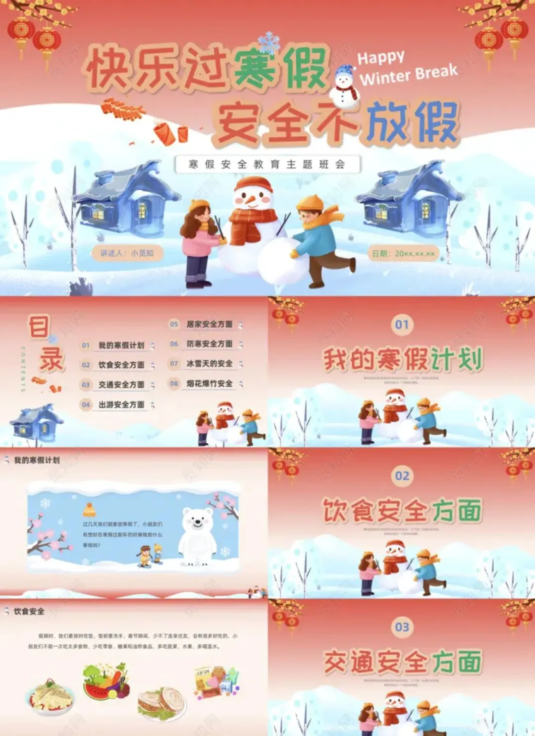 关注公众号,每日分享各种好书/软件/PPT模板/各种电子素材,加\/:2250734082,免费领取100G电子资料。寒假安全相伴寒假致家长的一封信寒假家长会PPT 蓝色卡通寒假安全教育冬季安全主题班会PPT 卡通彩色寒假安全教育安全班会PPT课件 绿色蓝色国潮国风寒假安全教育主题班会动态PPT 粉色卡通儿童中小学儿童我的寒假生活