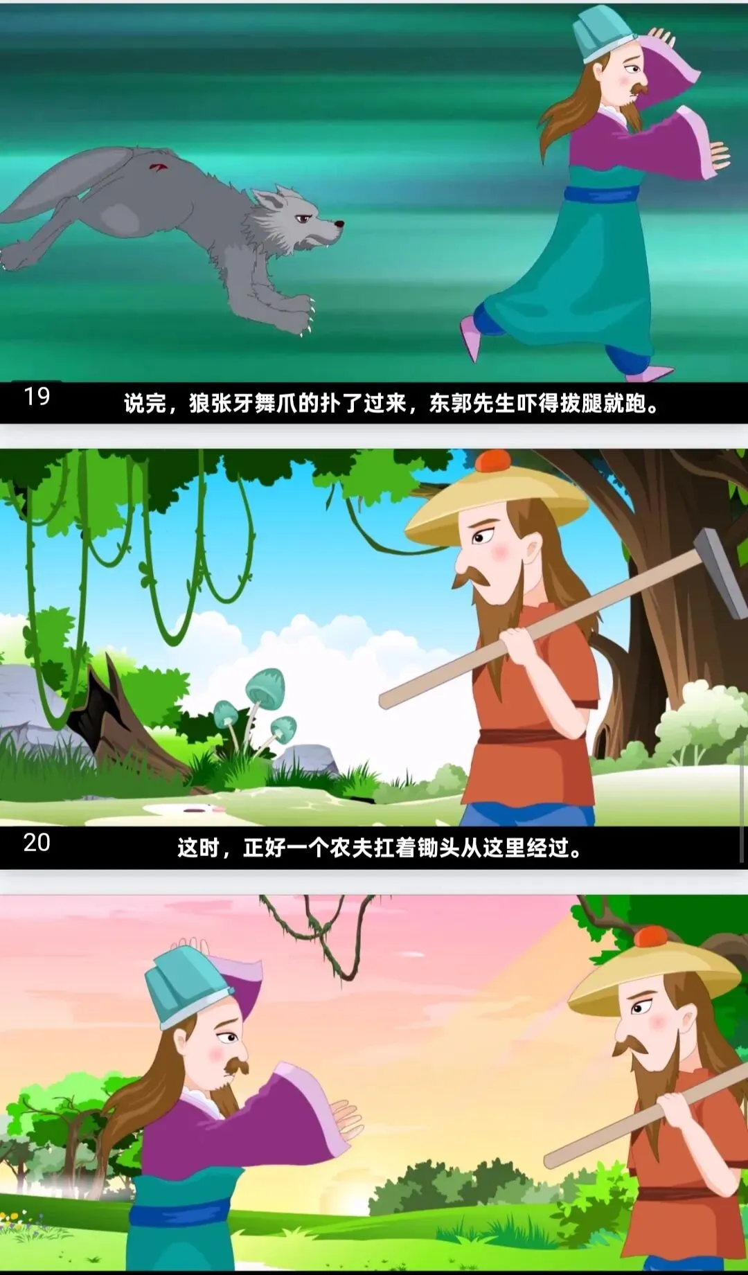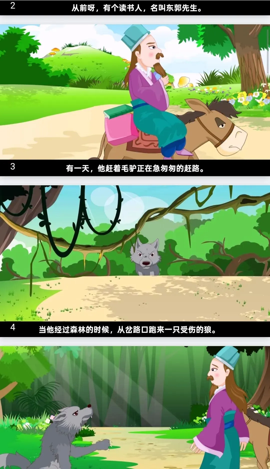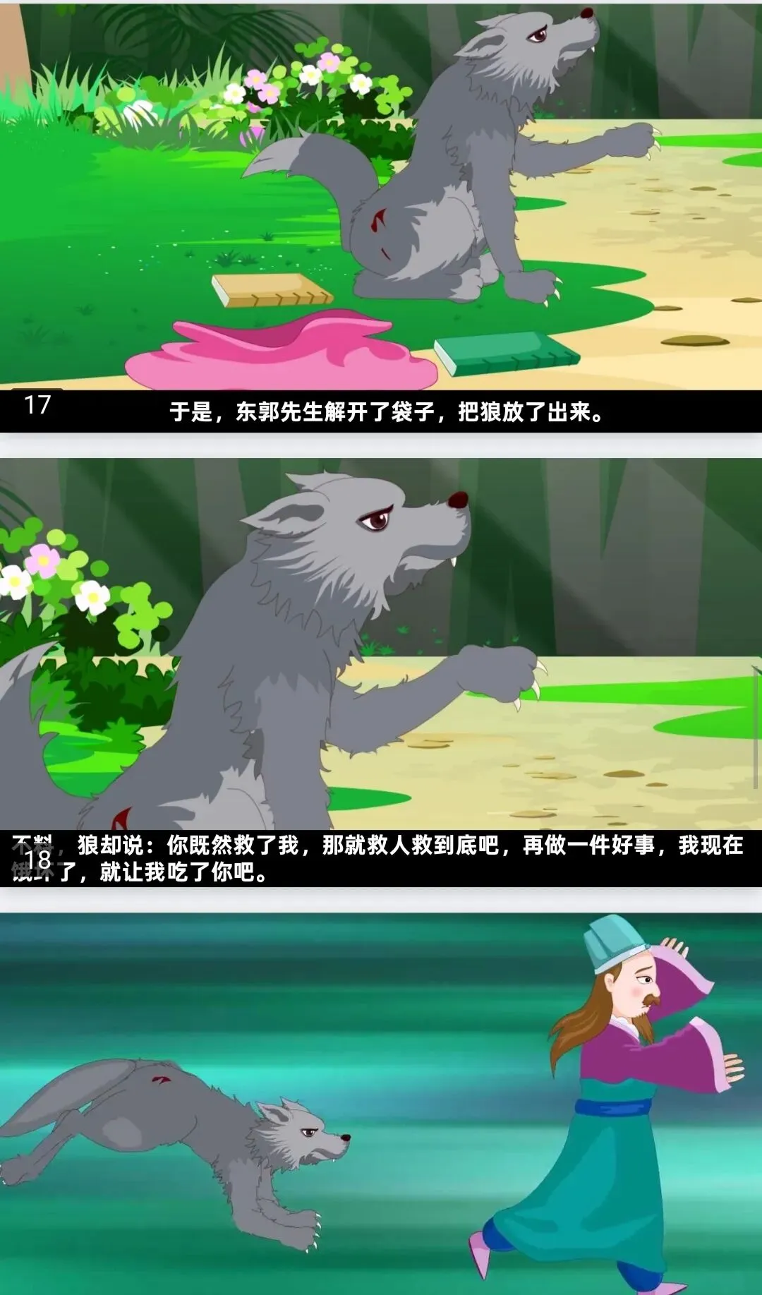 本文分享内容(小朋友睡前故事/东郭先生和狼PPT模板)