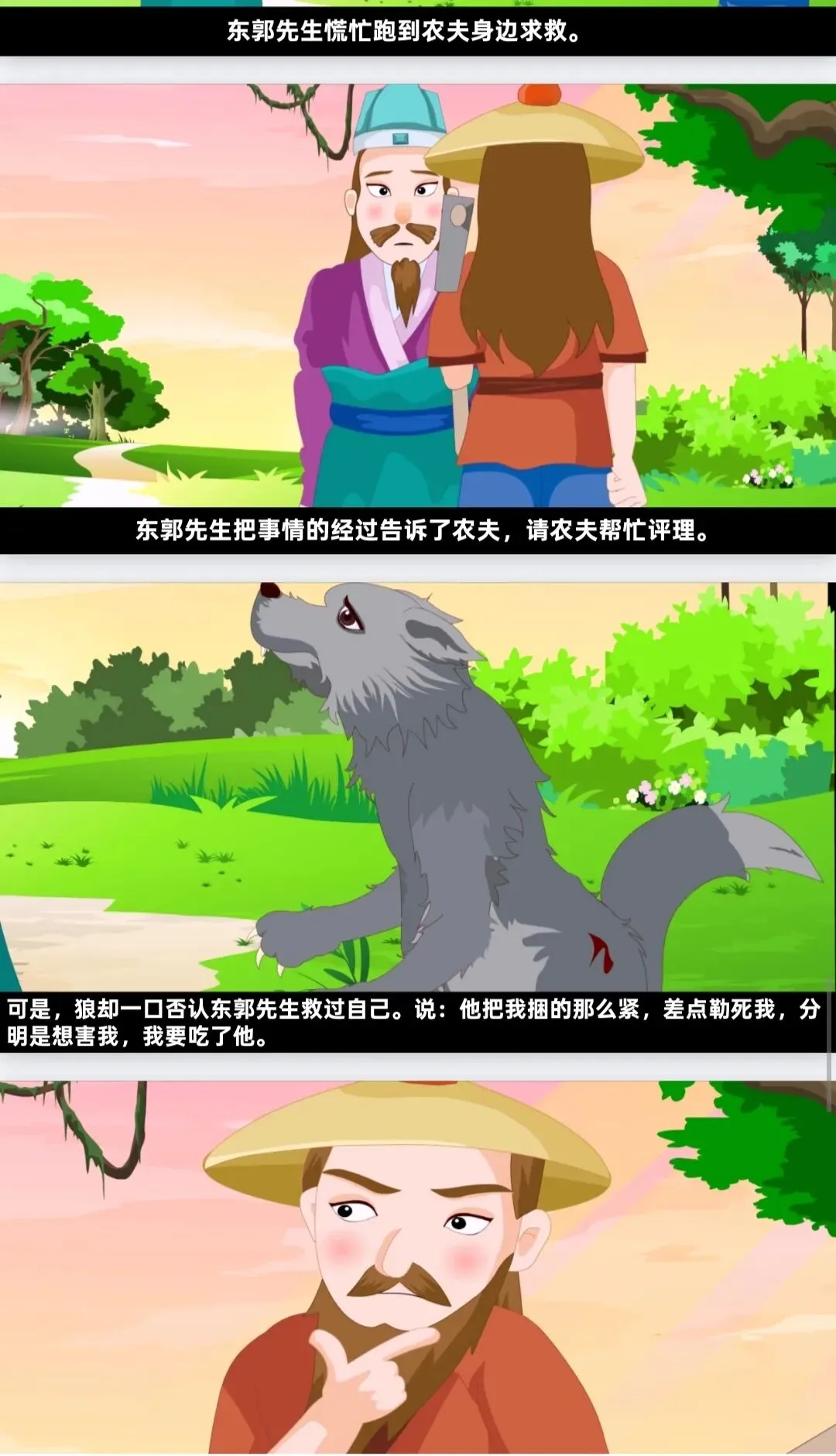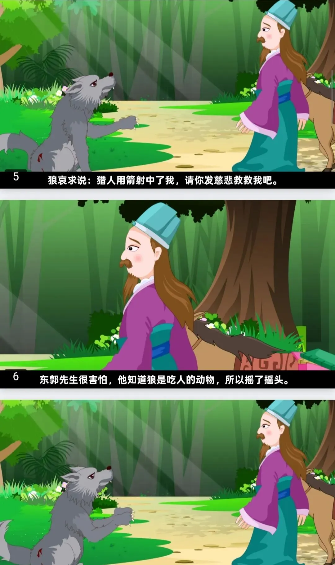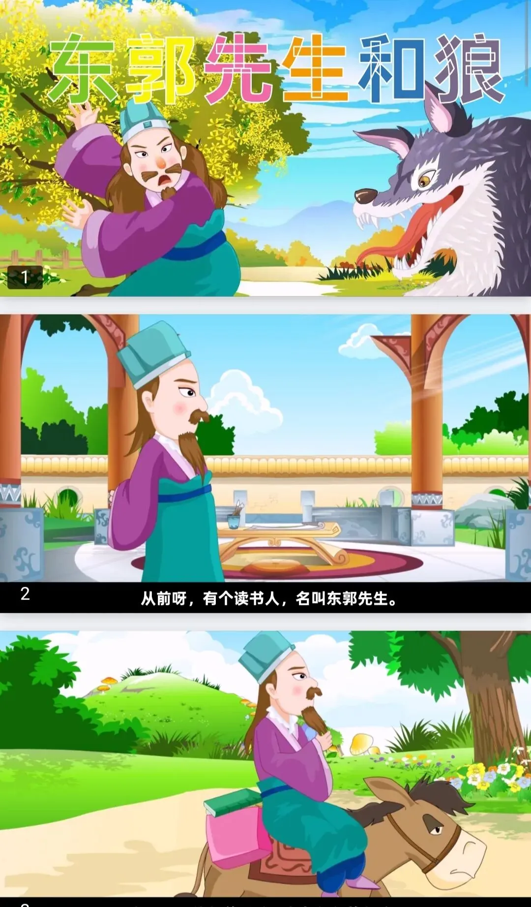 本文分享内容(小朋友睡前故事/东郭先生和狼PPT模板)