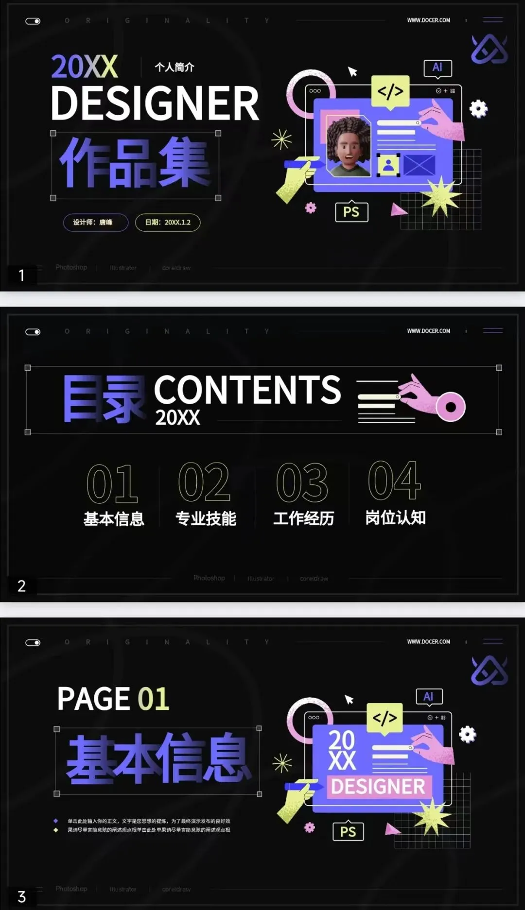 本文内容分享【 各类高端作品集通用PPT模板 6 】