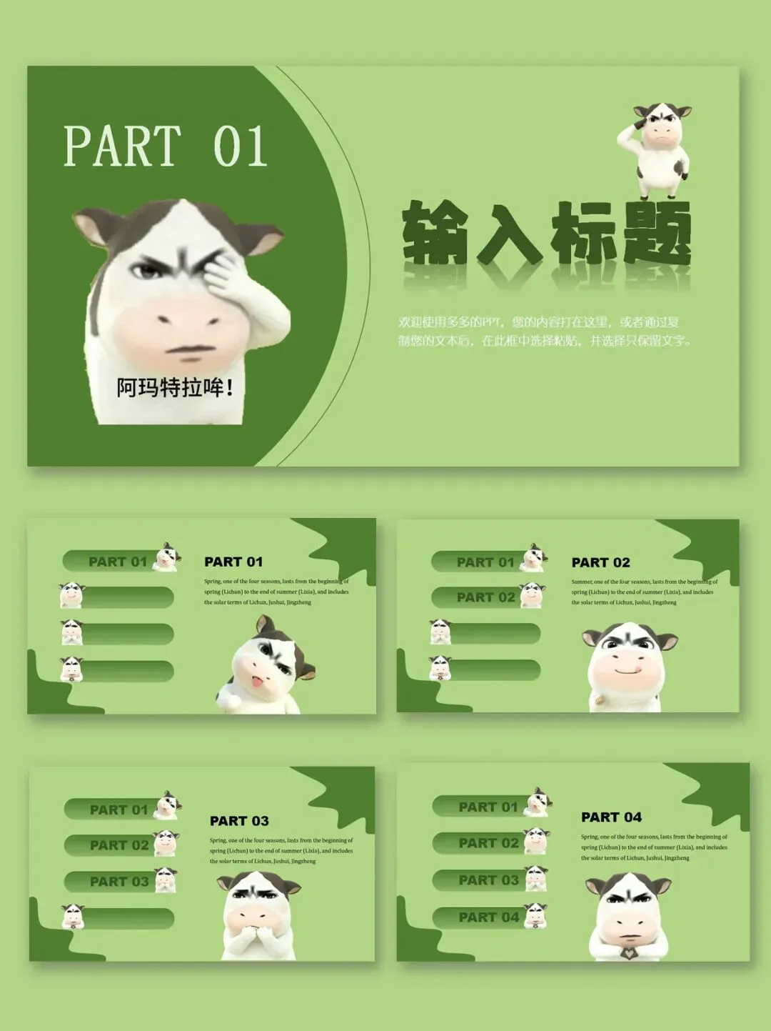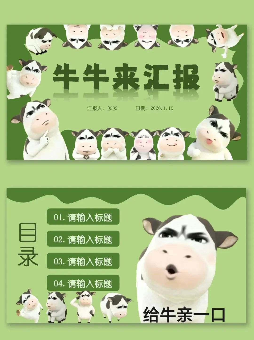 >草地牛PPT模板2.0版 | 小组汇报展示