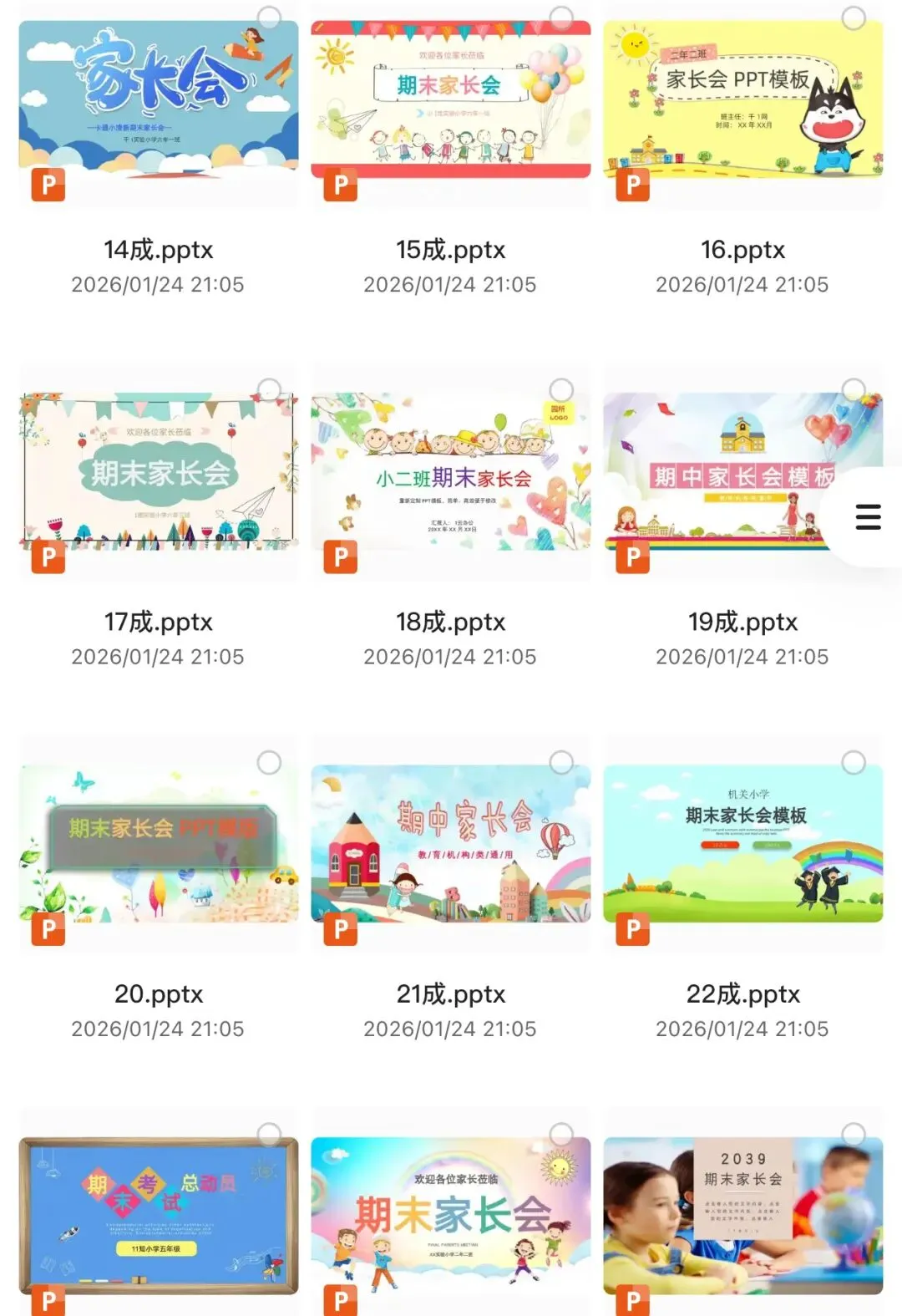 班主任的期末清单里,期末家长会PPT绝对是重中之重!但没人想把宝贵的时间浪费在做PPT上,毕竟还有期末总结、成绩分析、寒假安排一堆事要忙。今天就给大家送干货了!2026期末家长会万能PPT模板新鲜出炉,覆盖全年级、适配所有风格,从封面到结尾,从文字到配图,全部整理到位,可直接修改、一键套用,帮你节省80%的时间,把精力放在更重要的家校沟通上,现在就能免费领!