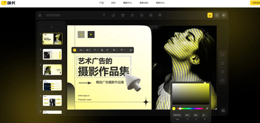 - 智能抠图与主体突出:支持智能抠图功能,可自动提取产品主体、人物形象等,生成高质感的展示页;对于需要展示产品成果、团队照片的年终汇报来说,能让主体更突出,页面更简洁。