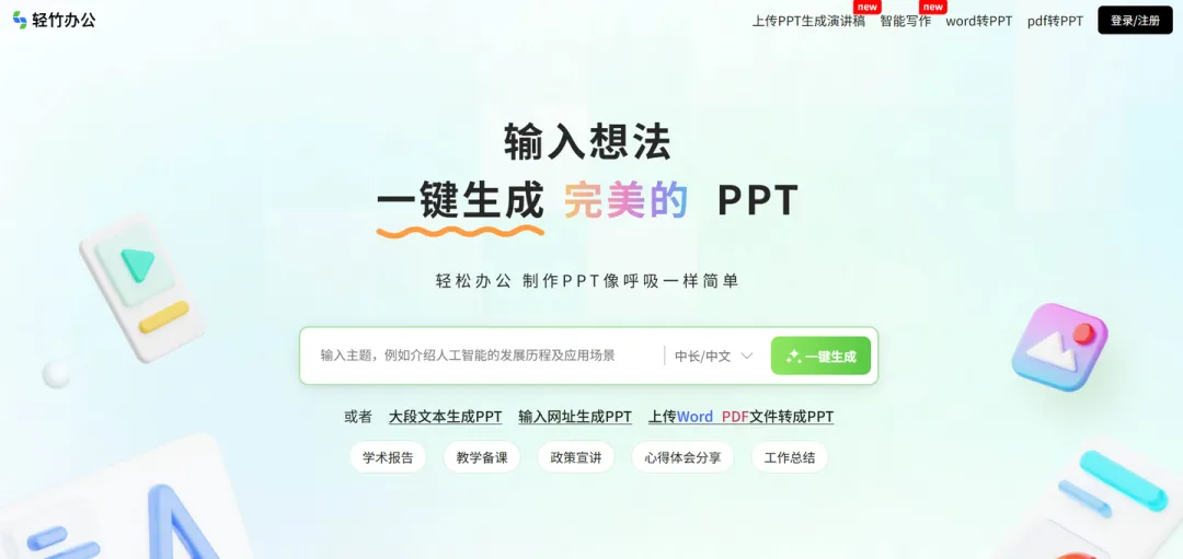 - 长文本输入支持:最多可支持2万字长文本输入,能直接将完整的年终总结文档上传,自动提取关键信息生成PPT,不用手动拆分文本,对于内容较多的年终汇报来说很省心。