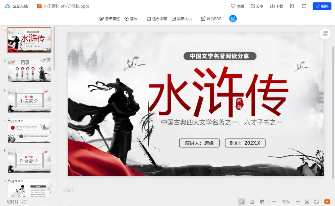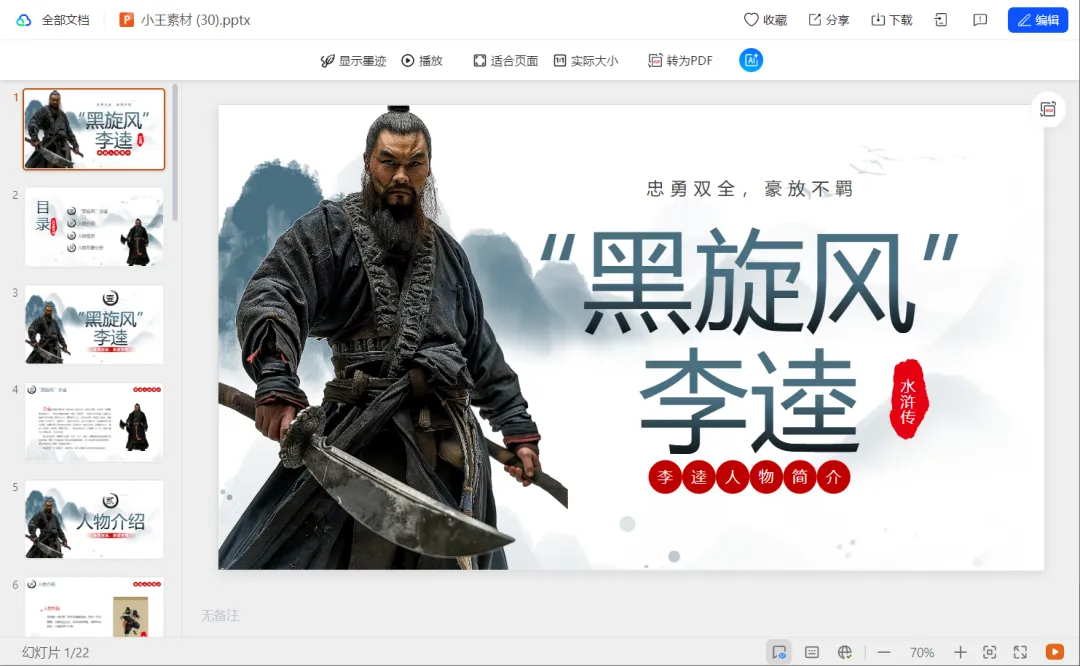 【资源分享】34 套水浒传 PPT 模板丨解码古典小说的社会镜像