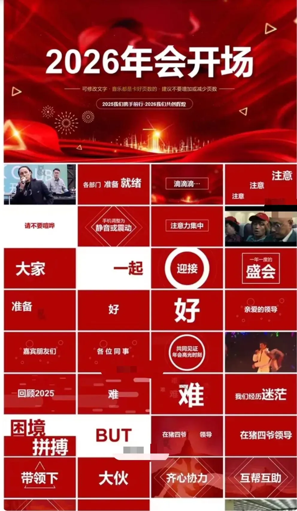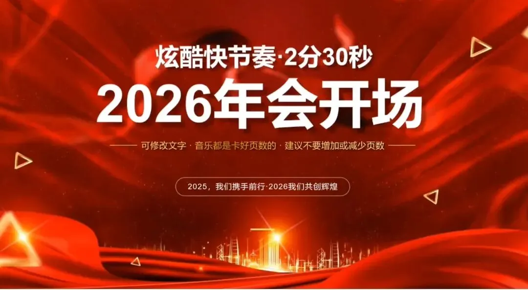 【PPT模板】2026年会快闪PPT模板一套,爆笑开场,适合公司年会、颁奖典礼、晚会等场合,现场气氛燃爆,朋友圈刷屏必备!PPT内容可编辑公司名字,高清效果,现场互动性强,调动气氛。