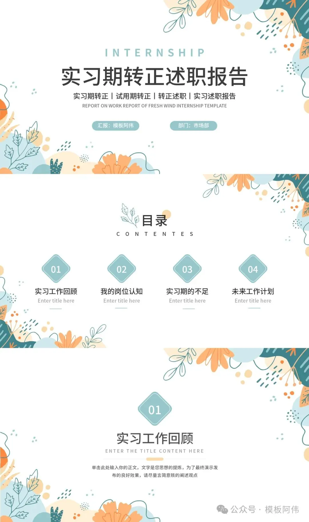 (文末可领取转正述职报告PPT模板)
