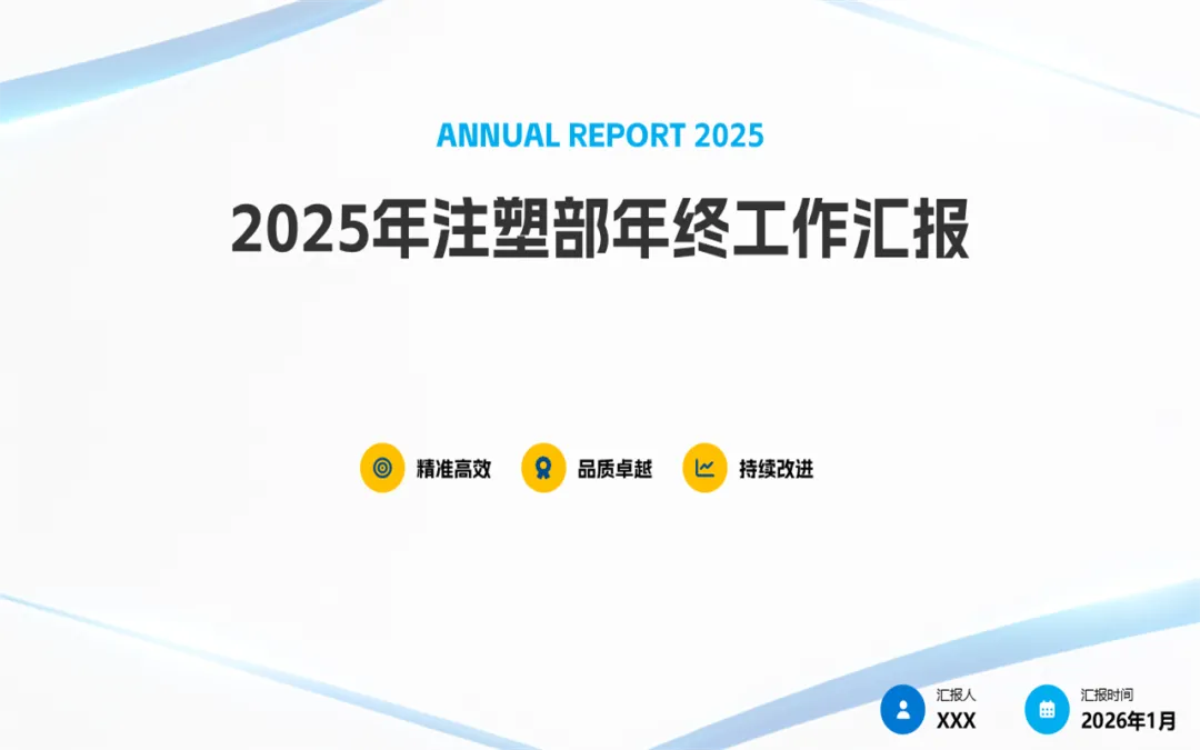 又到一年的盘点总结报告,在刚过去的2025年,我们注塑部门将通过下面的ppt年终总结报告来演示,注塑部门在2025年交出了一份怎样的答卷?又遇到了哪些挑战,对明年的工作开展又明确了哪些方向?