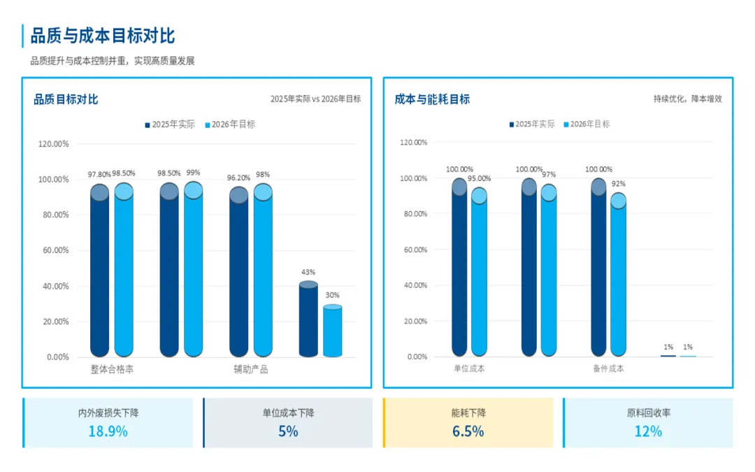 当然,在总结成绩的同时,也不忽视一些问题:比如内外部质量损失还是有点偏高,部分工序的效率瓶颈还没有完全突破,还有一些原材料供应不稳定、模具维修响应慢等难题。