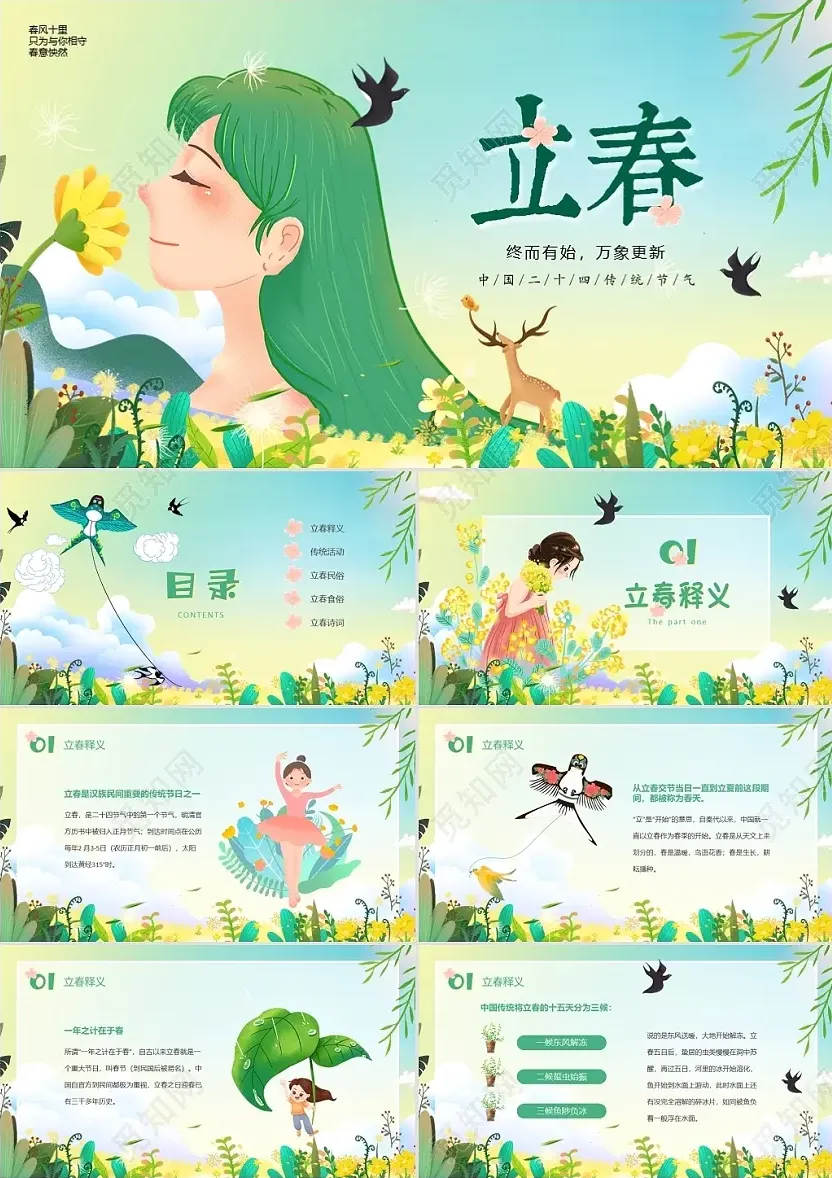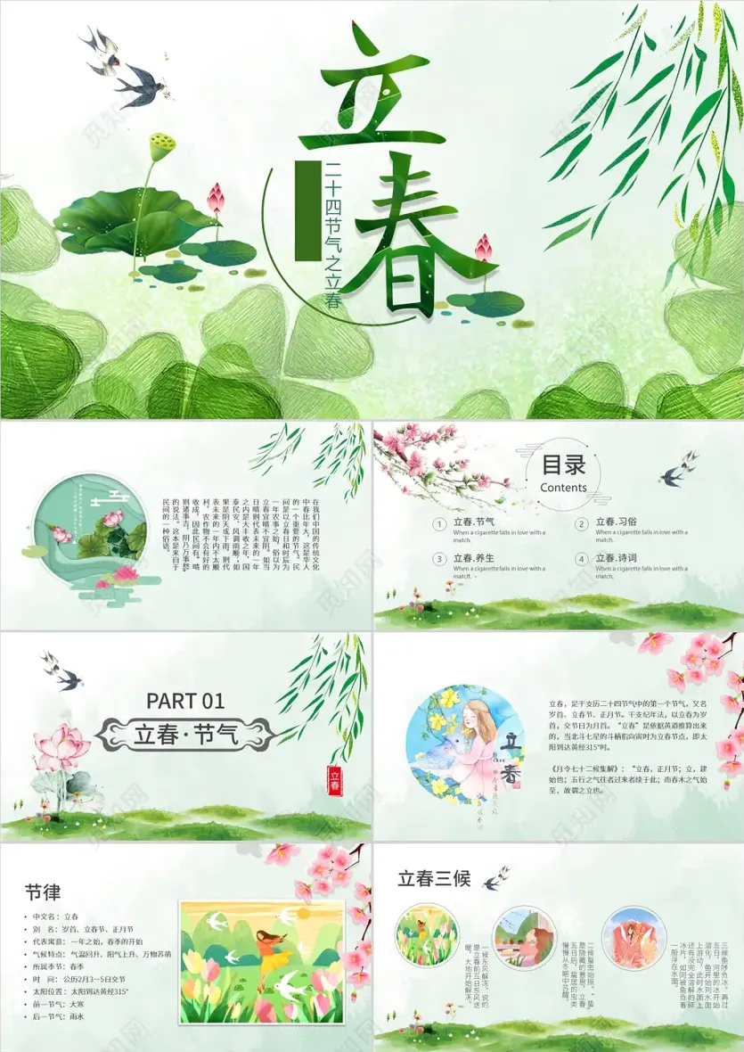 今天小编给大家精选了10套立春节气主题PPT模板,可用于节气介绍、主题班会、宣传等,有需要的可以直接滑到文末下载!