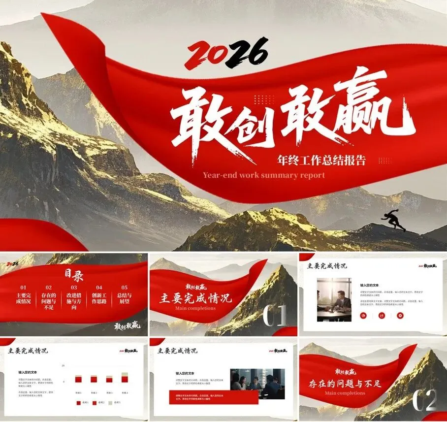 2026马年年终工作总结主题PPT模板(附电子版可下载)