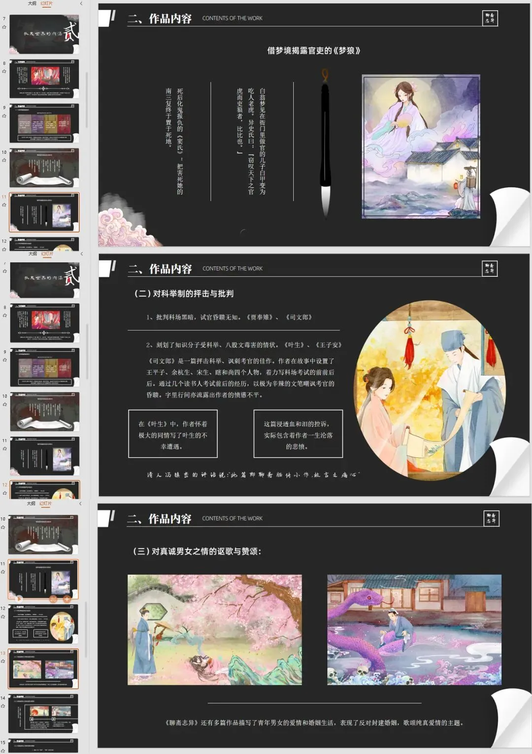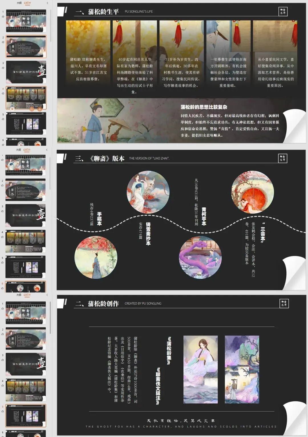 《聊斋志异》主题PPT模板一套!带内容!可编辑