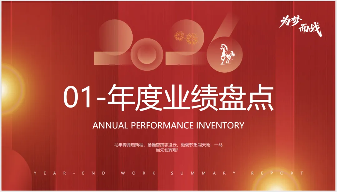 2026马年年终工作总结主题PPT模板(附电子版可下载)