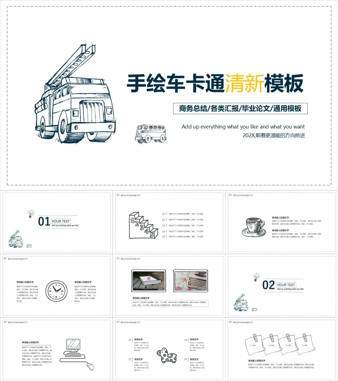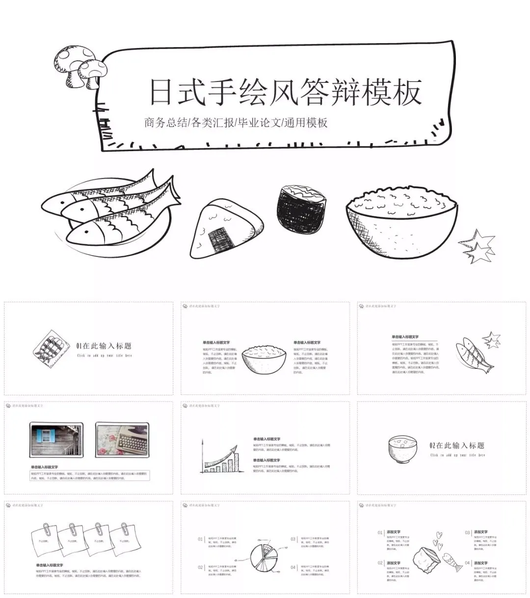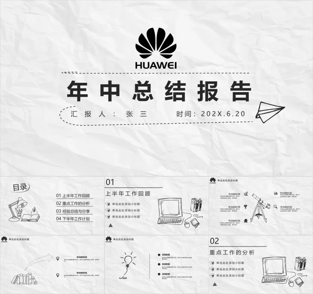 其实做手绘风没有那么依赖手绘技巧,找好素材,你也可以做出一份属于自己的手绘风格PPT。首先,应当选取手绘素材,手绘图标、手绘图案等等;其次,要选择手写字体,比如静蕾体、赵九江钢笔行书;最后,配色简单清新,多采用清新的配色。黑白灰加任意一彩色是最不会出错的配色方案。另外,黑板报、纸张填充背景也会让人耳目一新。这些特点你也会在以下PPT模板中看到。当然,最省事的、最简单的就是收好这套手绘风PPT模板。觉得不够独树一帜的话,还可以将不同模板之间小元素进行重组、陈列,形成自己的style。每个PPT的最后都有相应的手绘素材赠送。■PPT模板获取方式回复:手绘