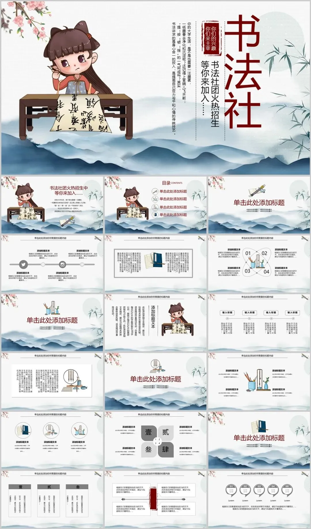 >书法社团招新PPT模板下载