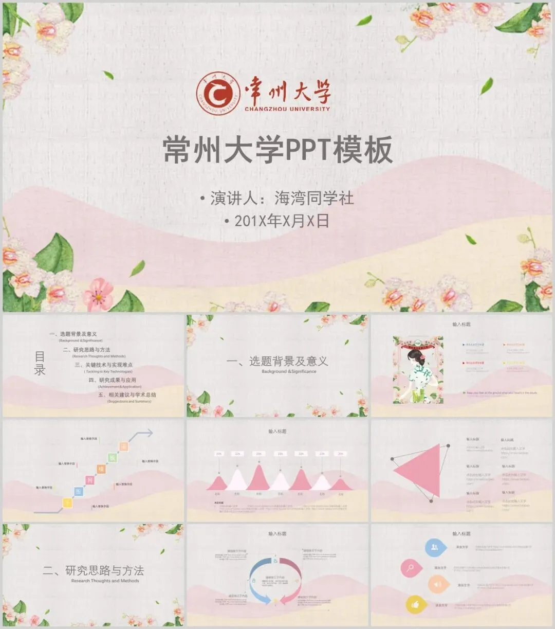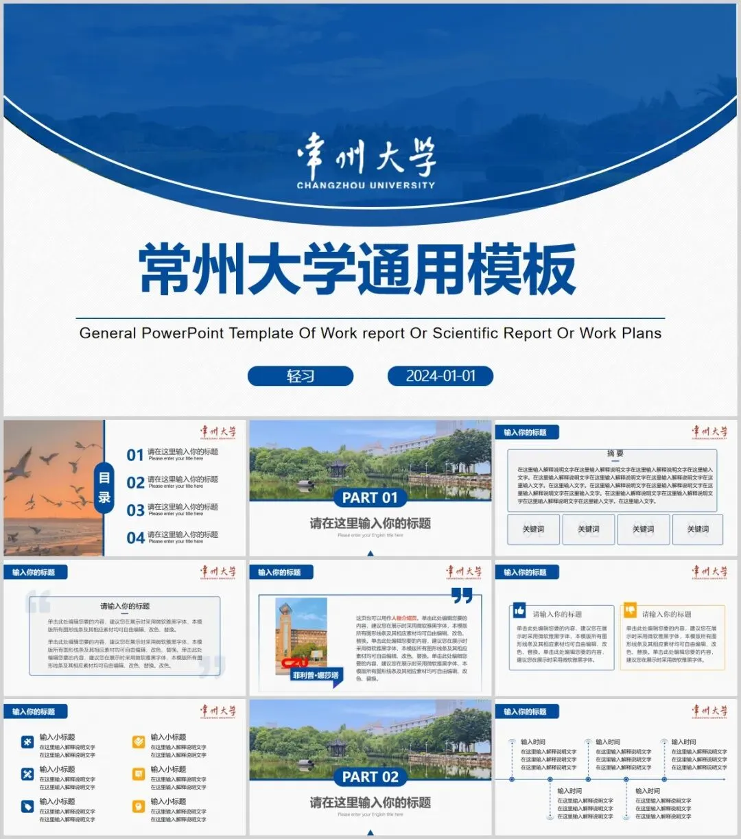 常州大学专属PPT模板来了,喜欢的同学不要错过啦!