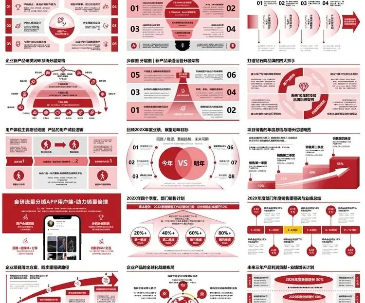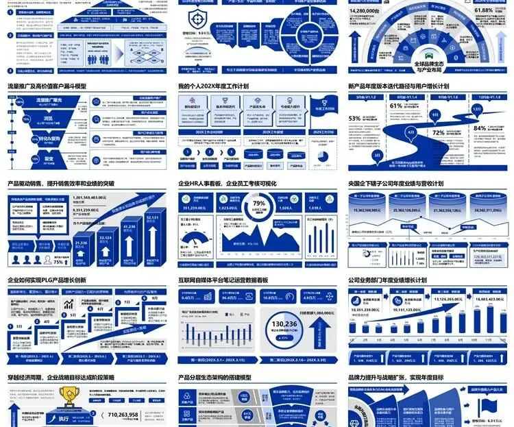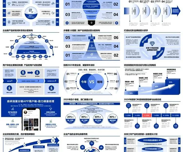【高端PPT模板】全方位企业战略PPT模板:从房型图、战略屋、数字化转型战略、技术架构、产品矩阵到HRBP战略数字化转型