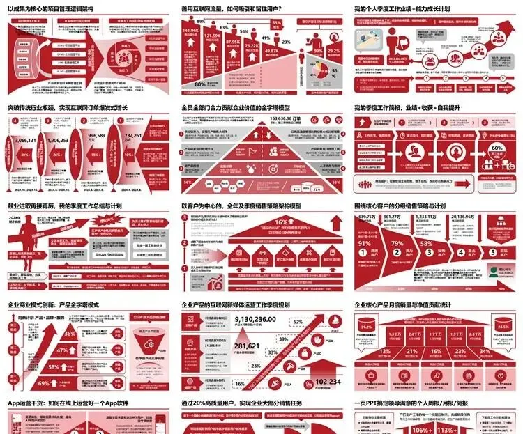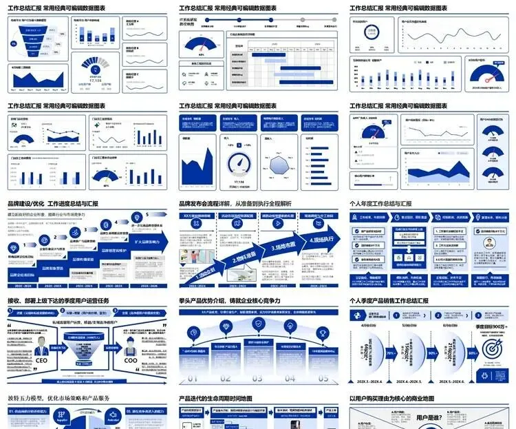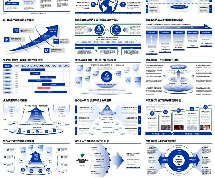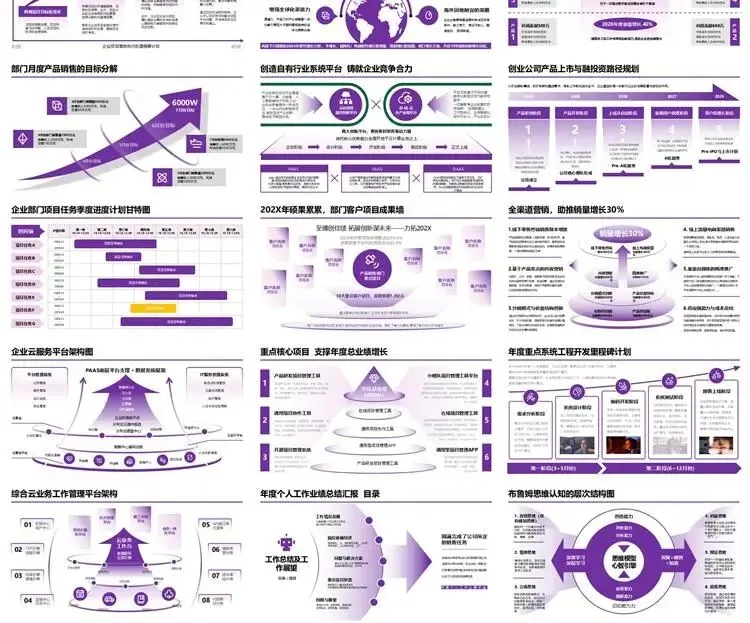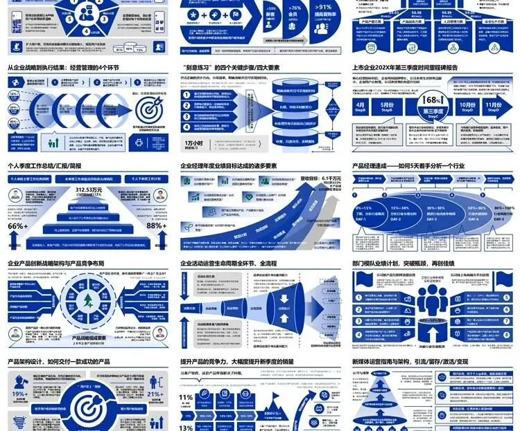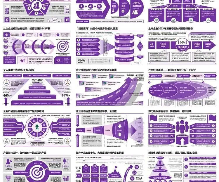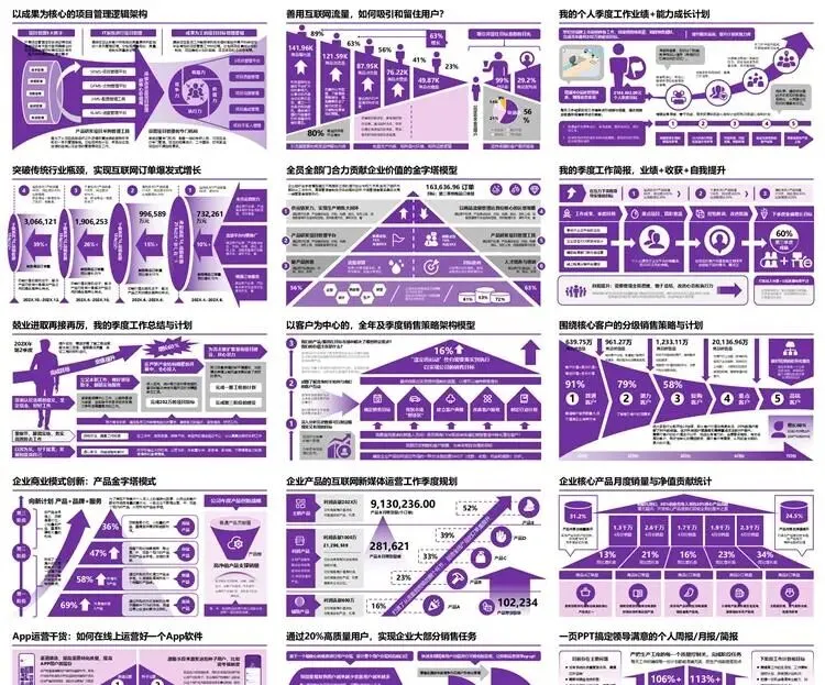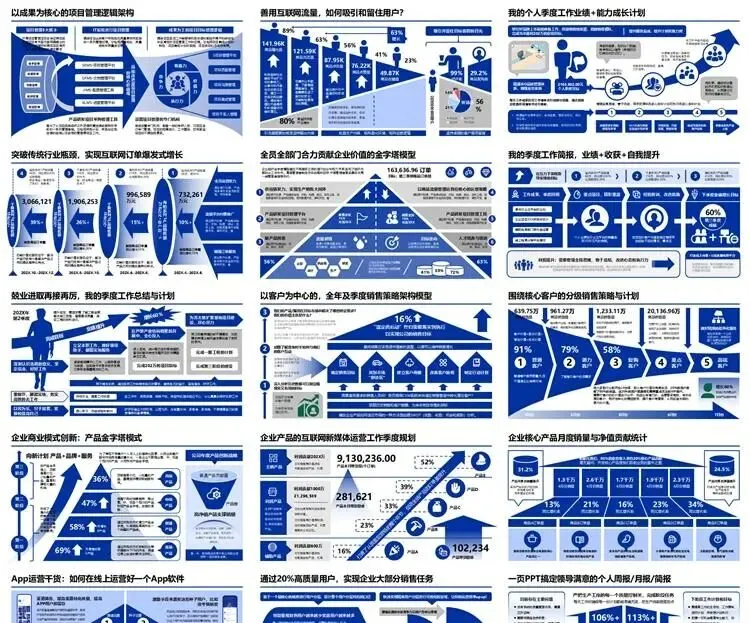 【高端PPT模板】高级工作汇报述职报告业务逻辑图架构图数据统计图表思维导图总体框架思维模型(共7种配色,每种配色500页)