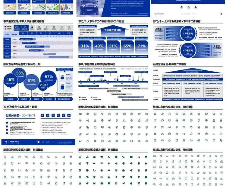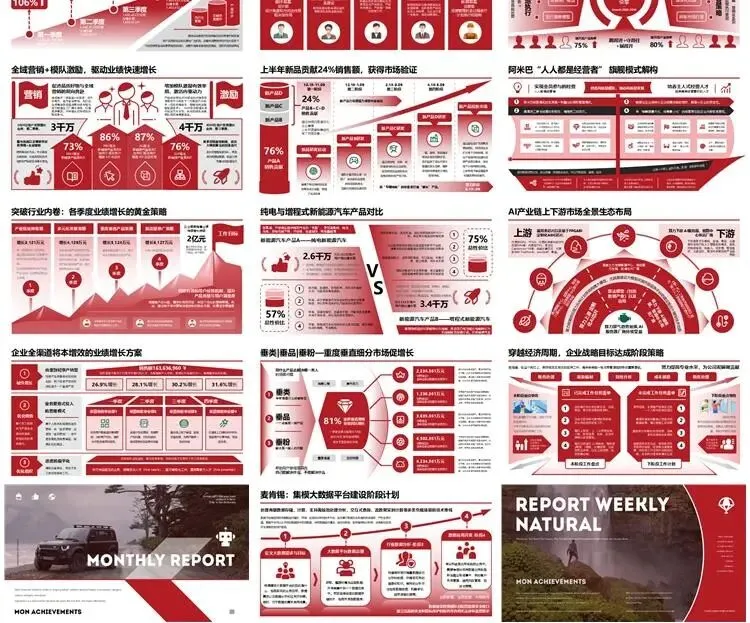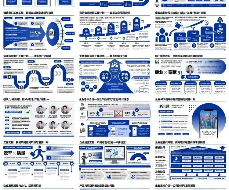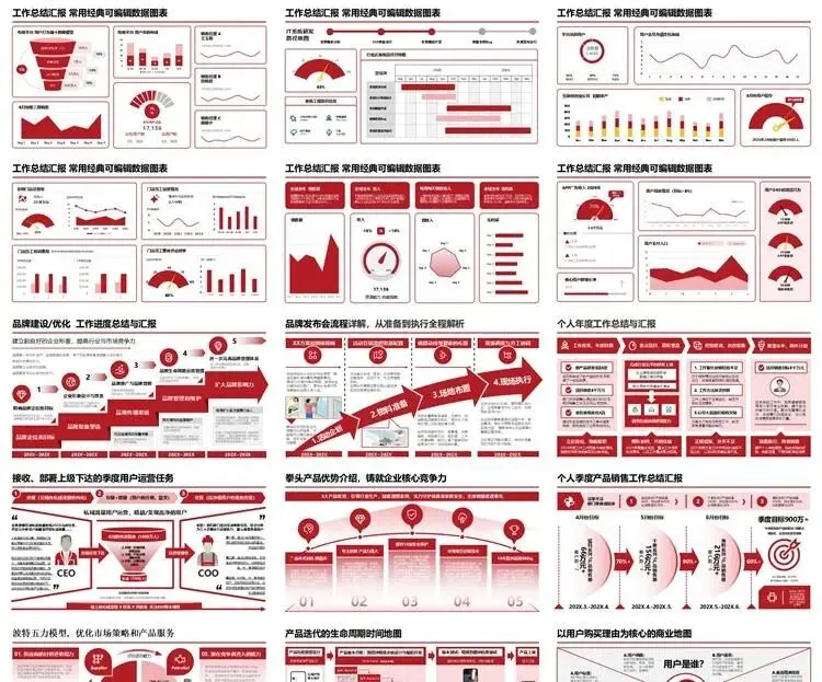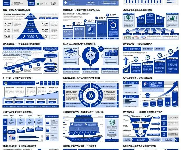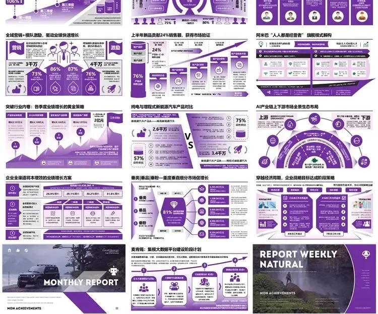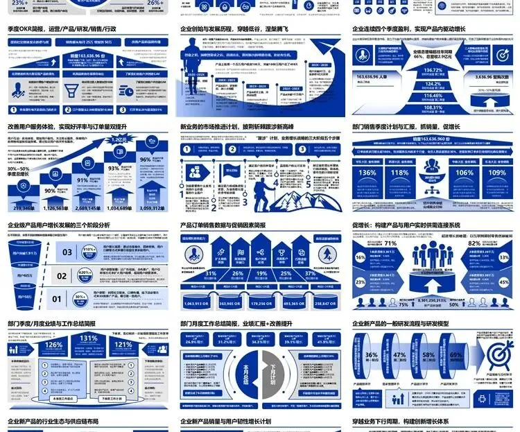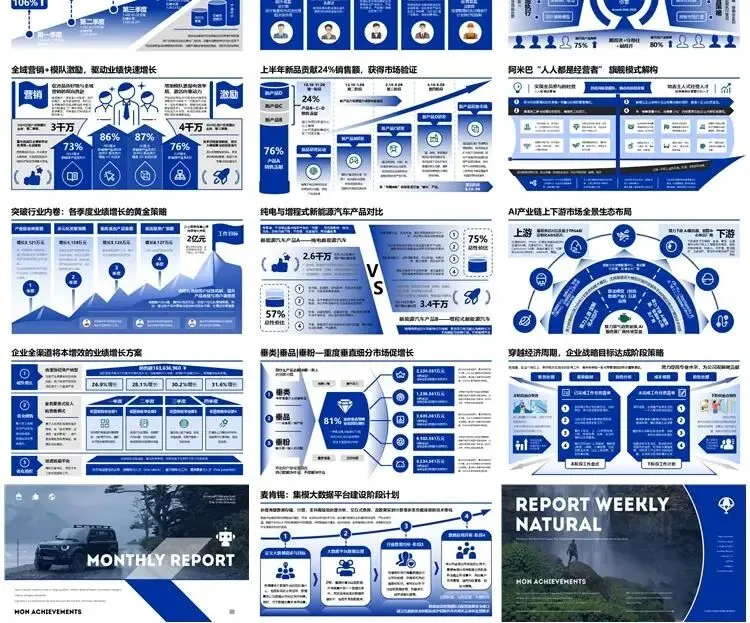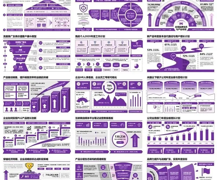 【高端PPT模板】高级工作汇报述职报告业务逻辑图架构图数据统计图表思维导图总体框架思维模型(共7种配色,每种配色500页)