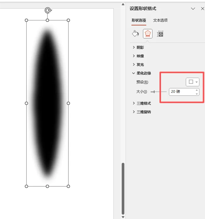 3、给椭圆设置【柔化边缘-20磅】的效果