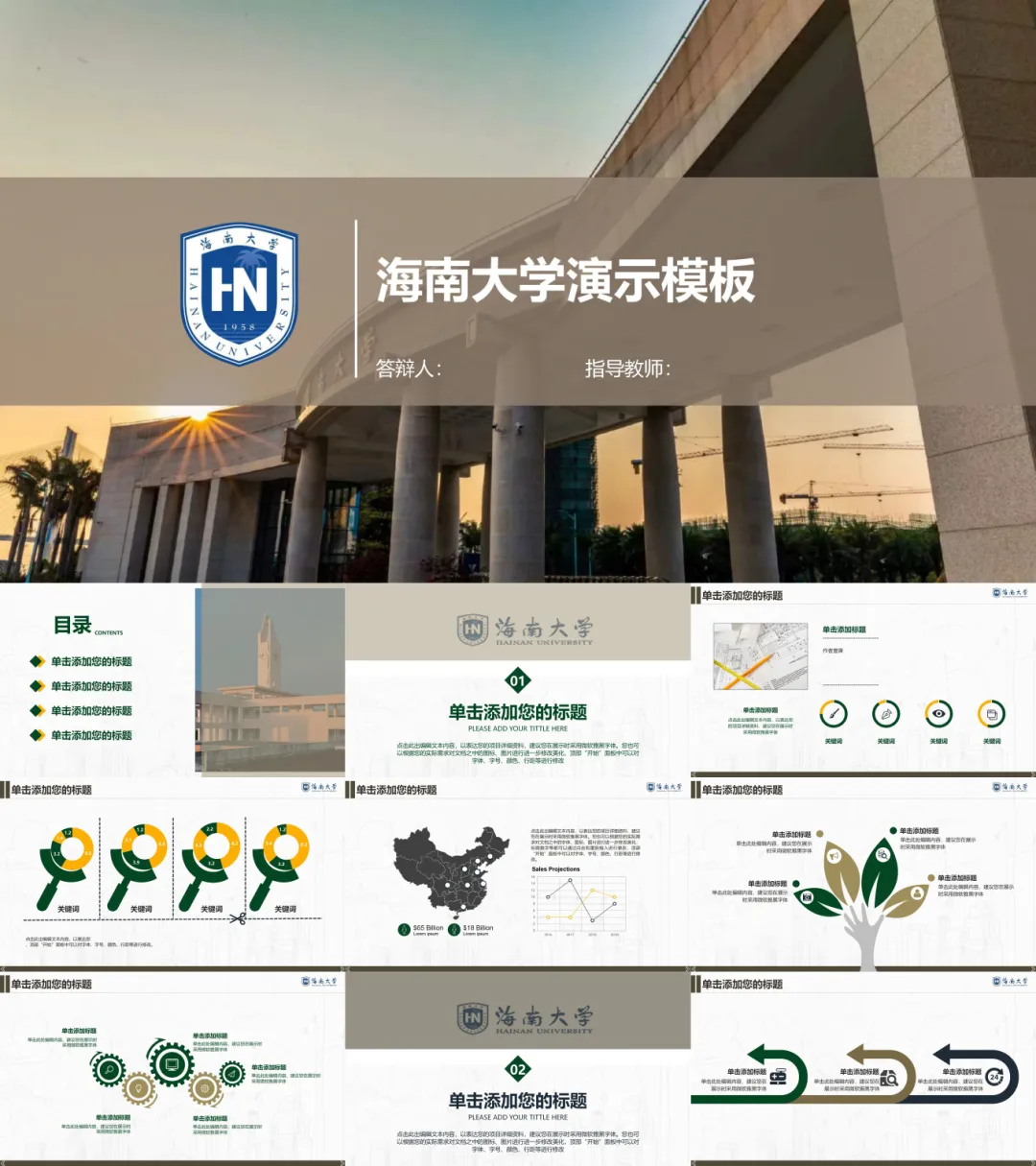 海南大学专属PPT模板来了,喜欢的同学不要错过啦!