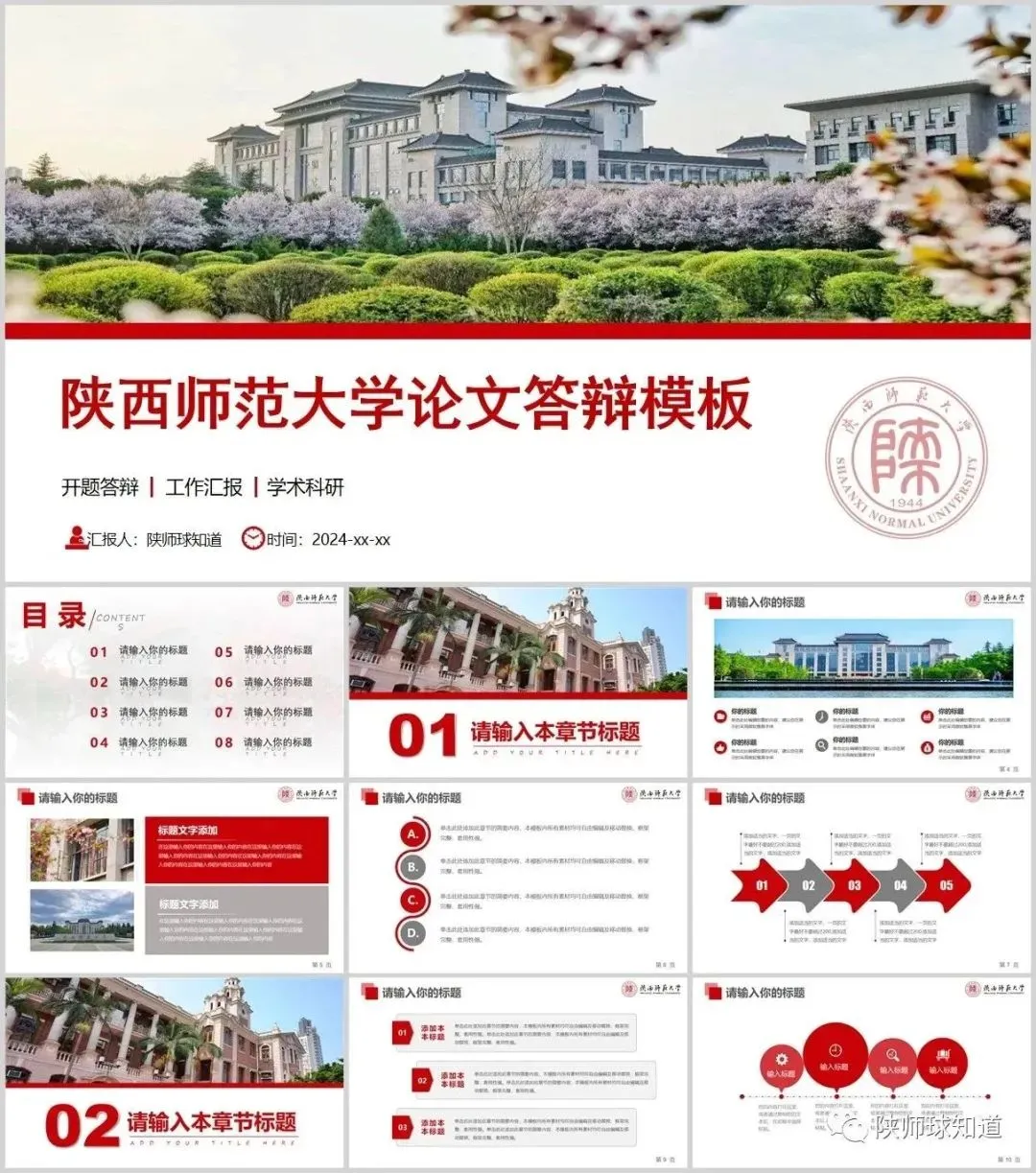 “陕西师范大学”PPT模板来了~