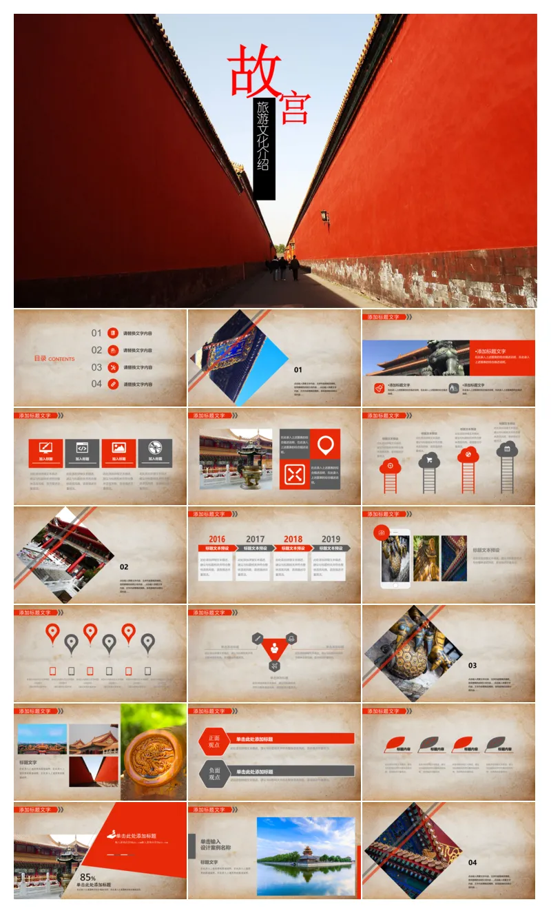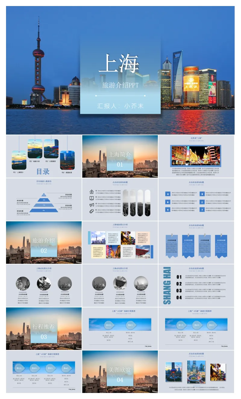 上海/北京/故宫专属旅游PPT模板来啦!自带城市地标图,分简介/景点/行程/美图板块,框架现成,填文字就能做旅行攻略、景区介绍,不管是分享游记还是做文旅汇报都超省心