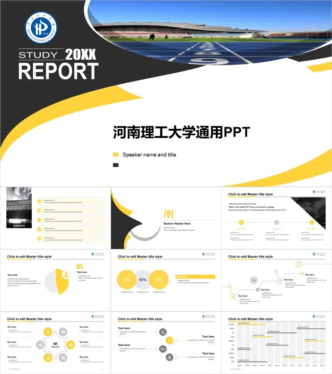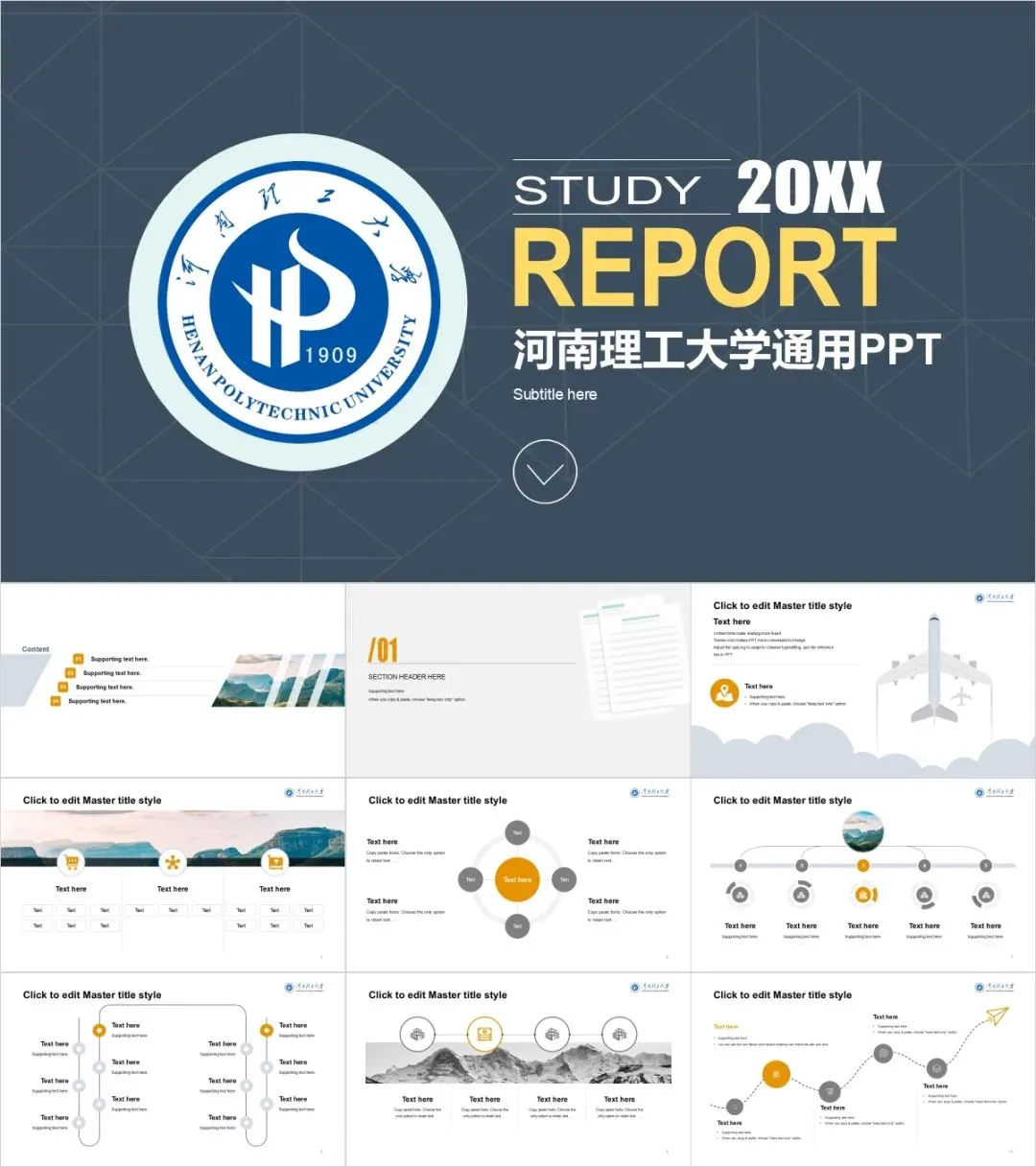 “河南理工大学”专属PPT模板来了!河理工同学们的PPT我们承包了!