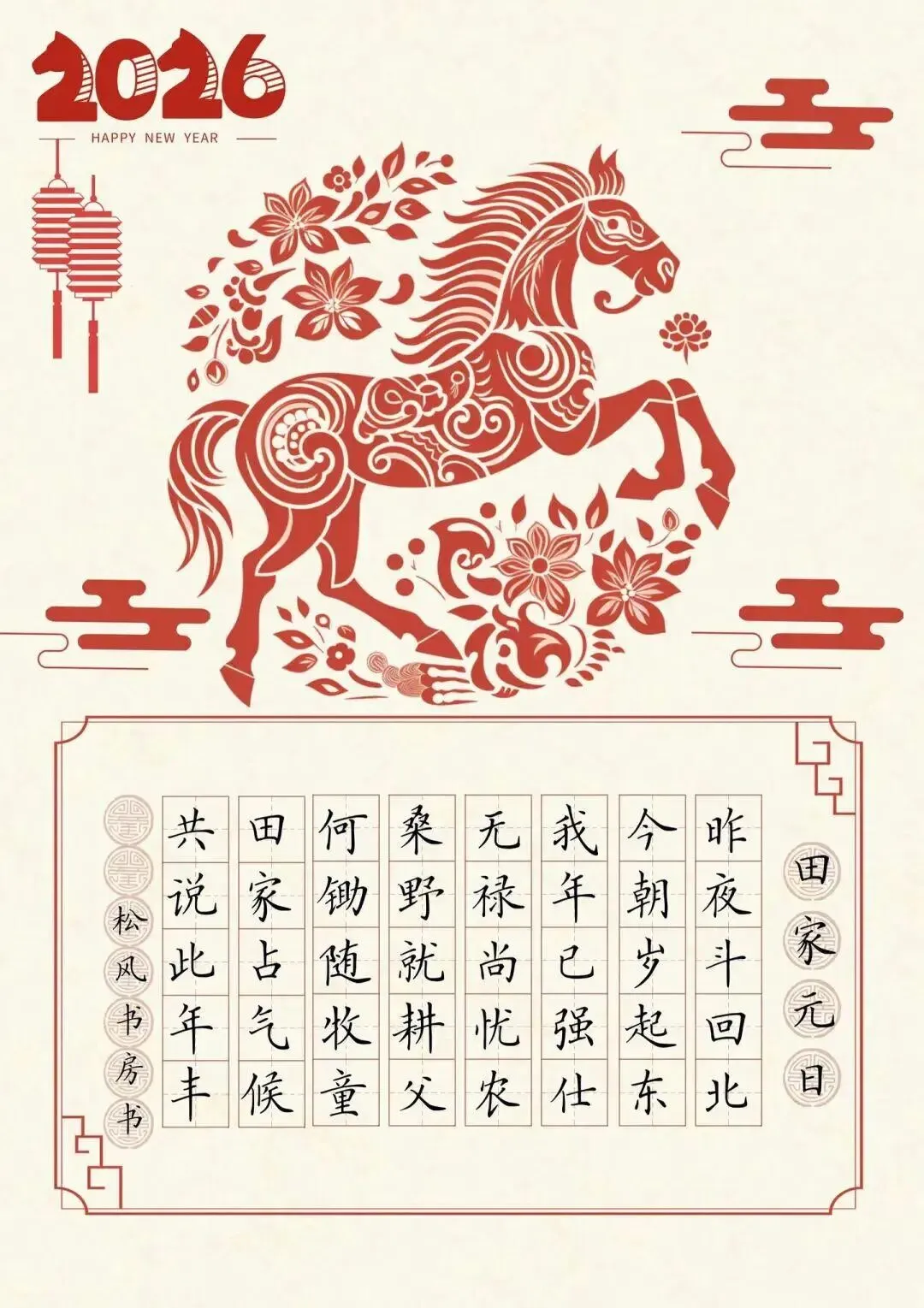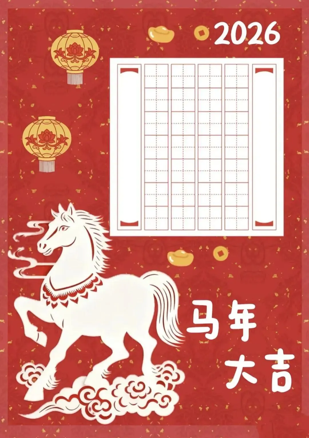 本文内容分享【2026年马年硬笔书法作品纸模板]