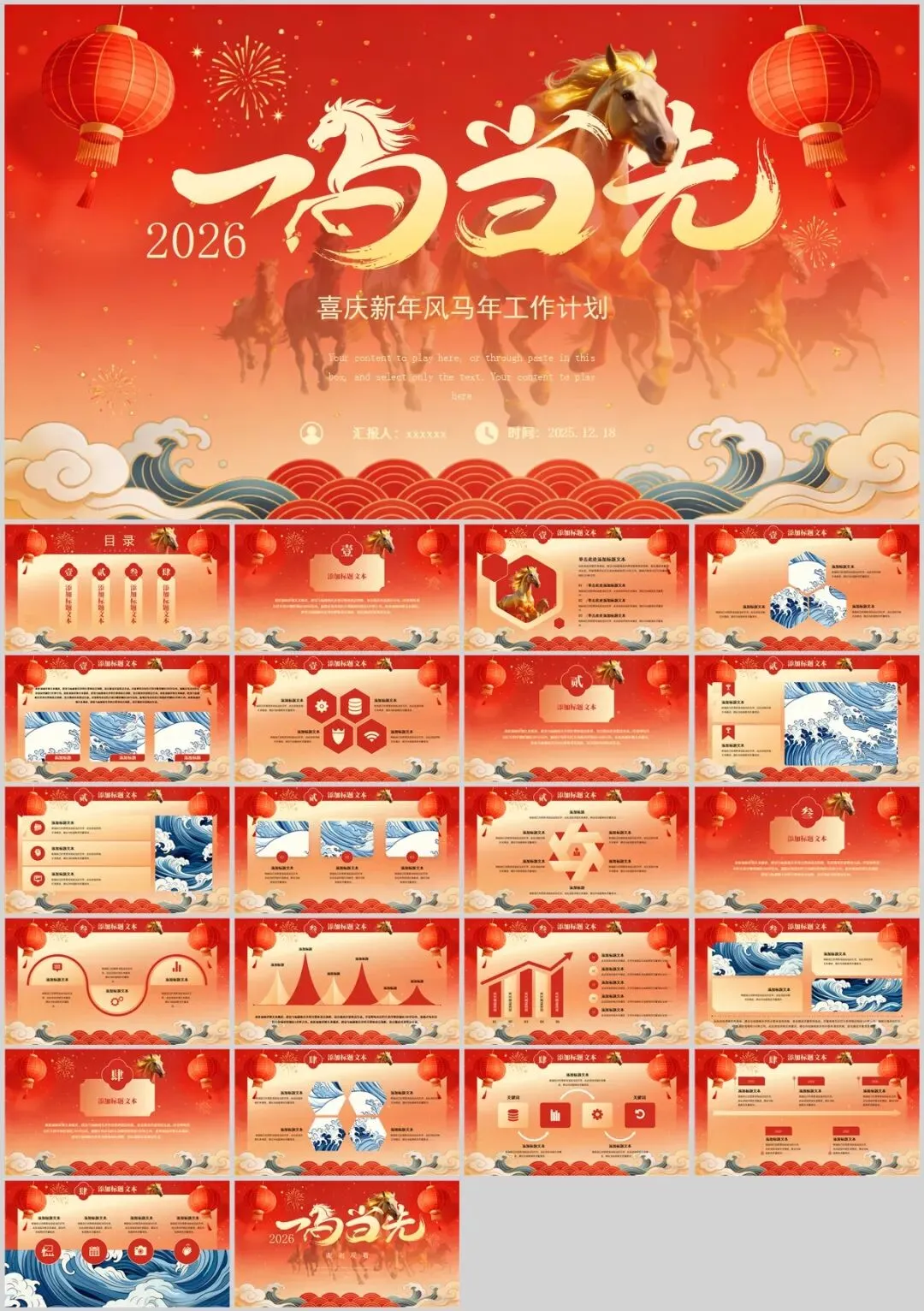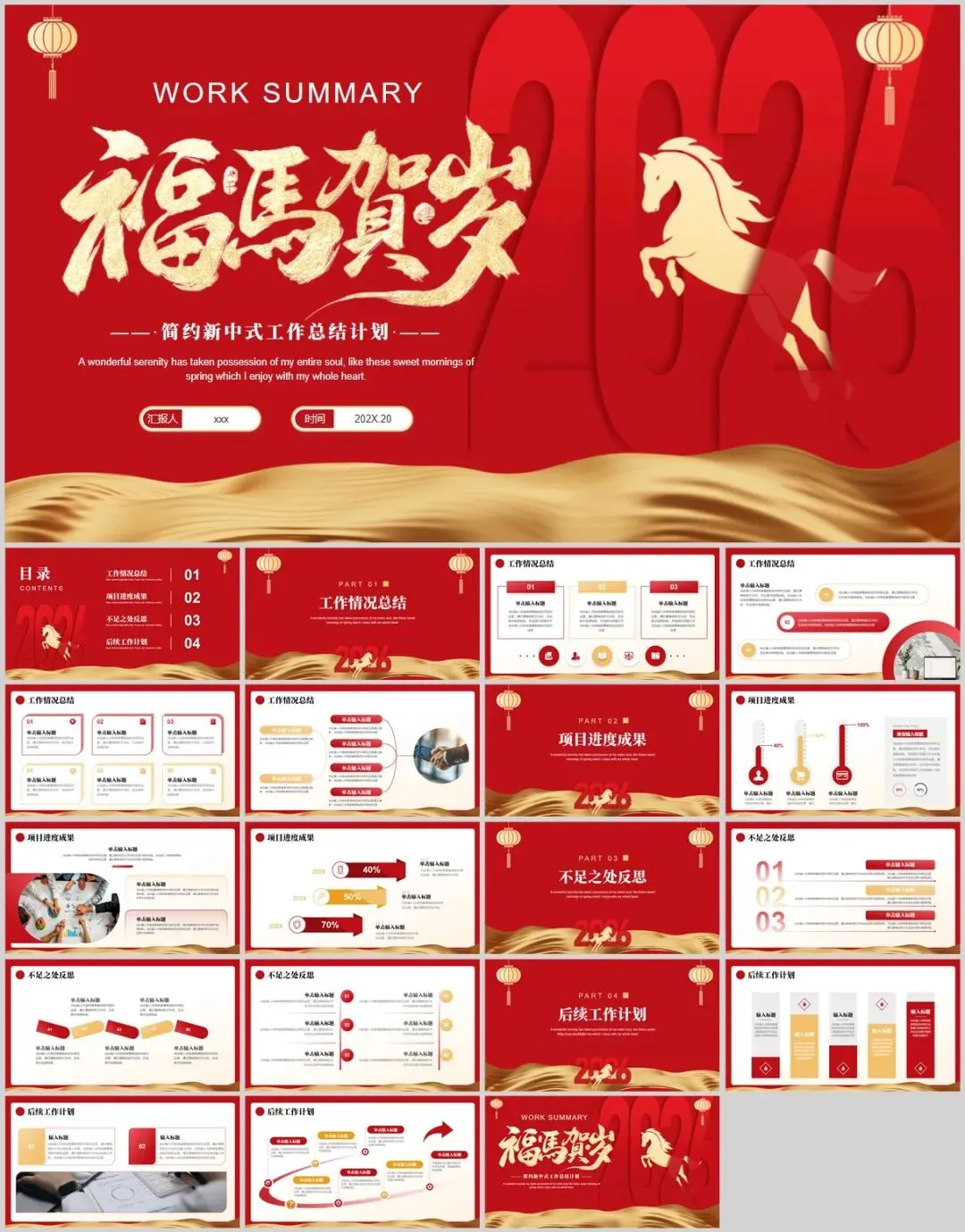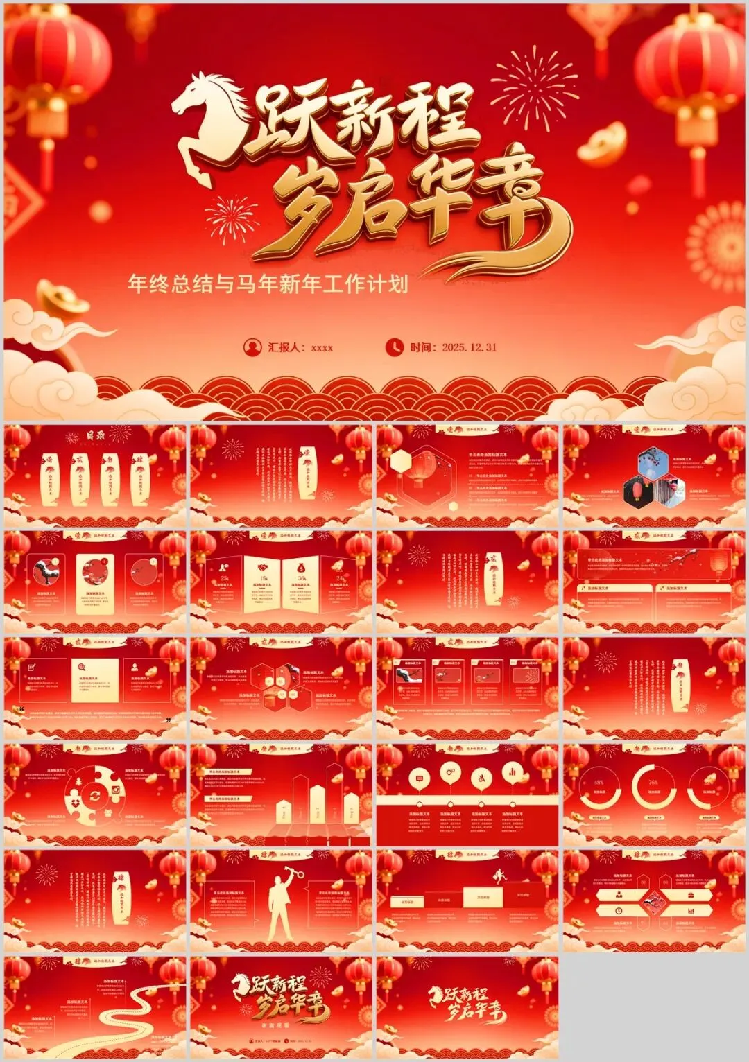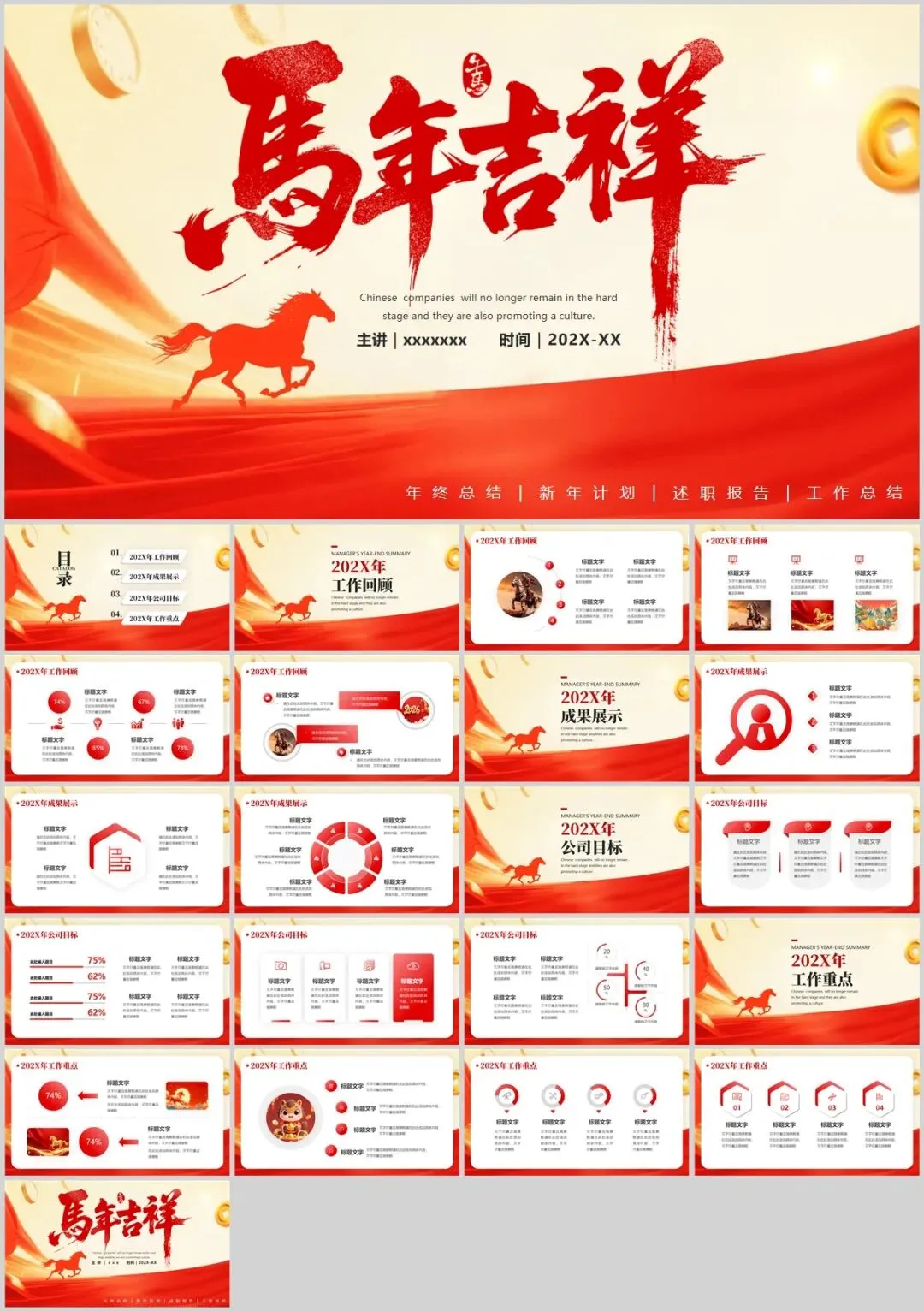 5套马年贺岁PPT模板,红色新中式春节PPT,大气!喜庆!惊艳!
